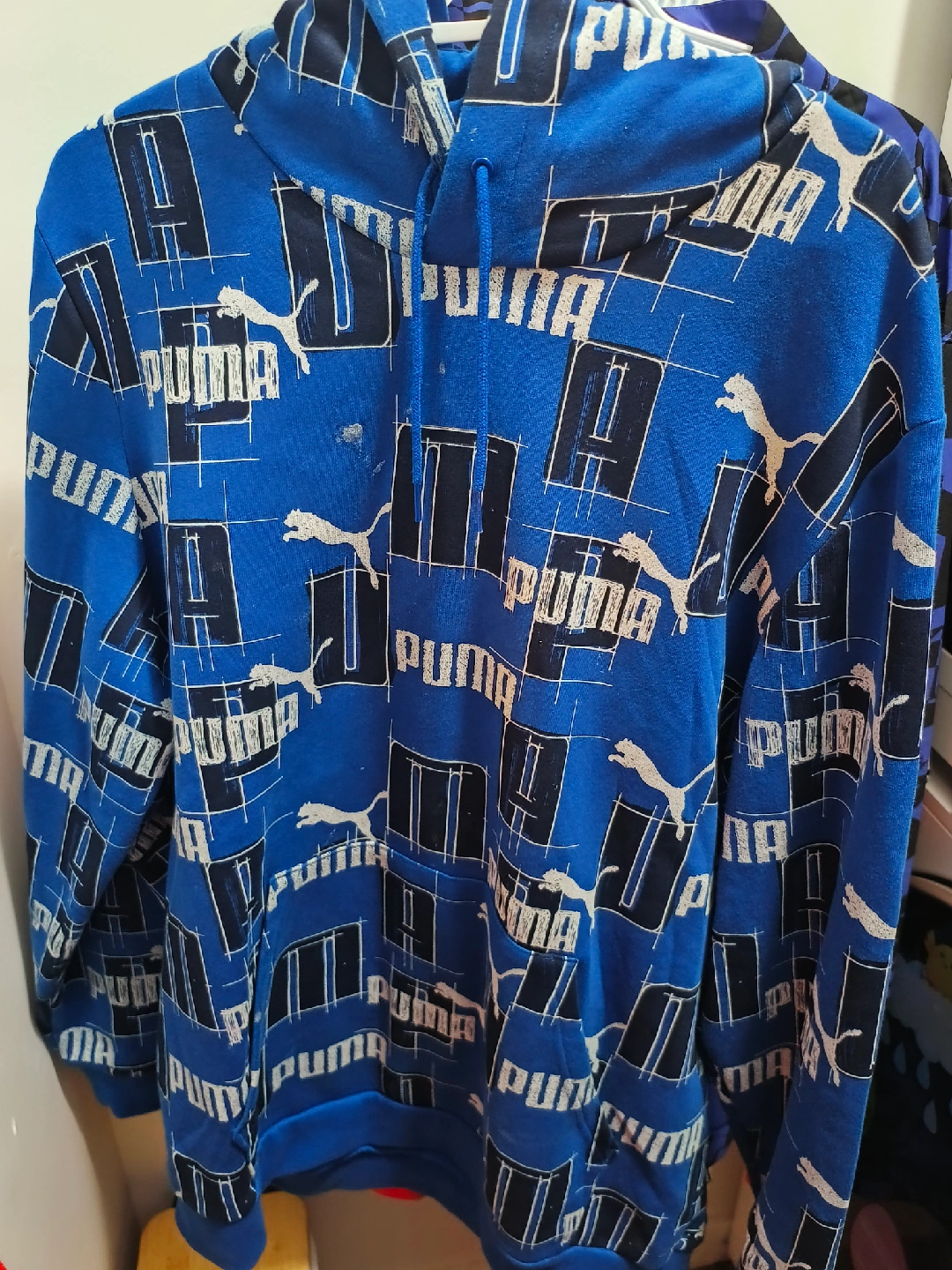 This Men's Puma hoodie features an all-over print in a vibrant blue colour.