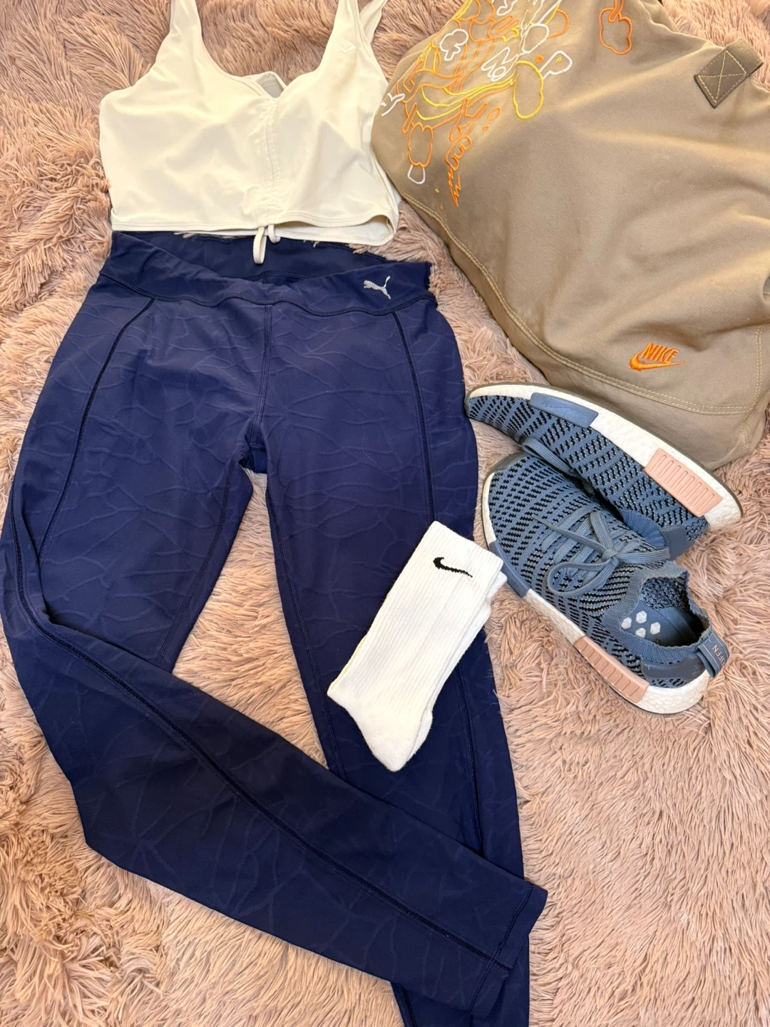 Selling a pair of Puma leggings in blue! Size L. They're in great condition and ready for a new home. Perfect for workouts or just lounging around