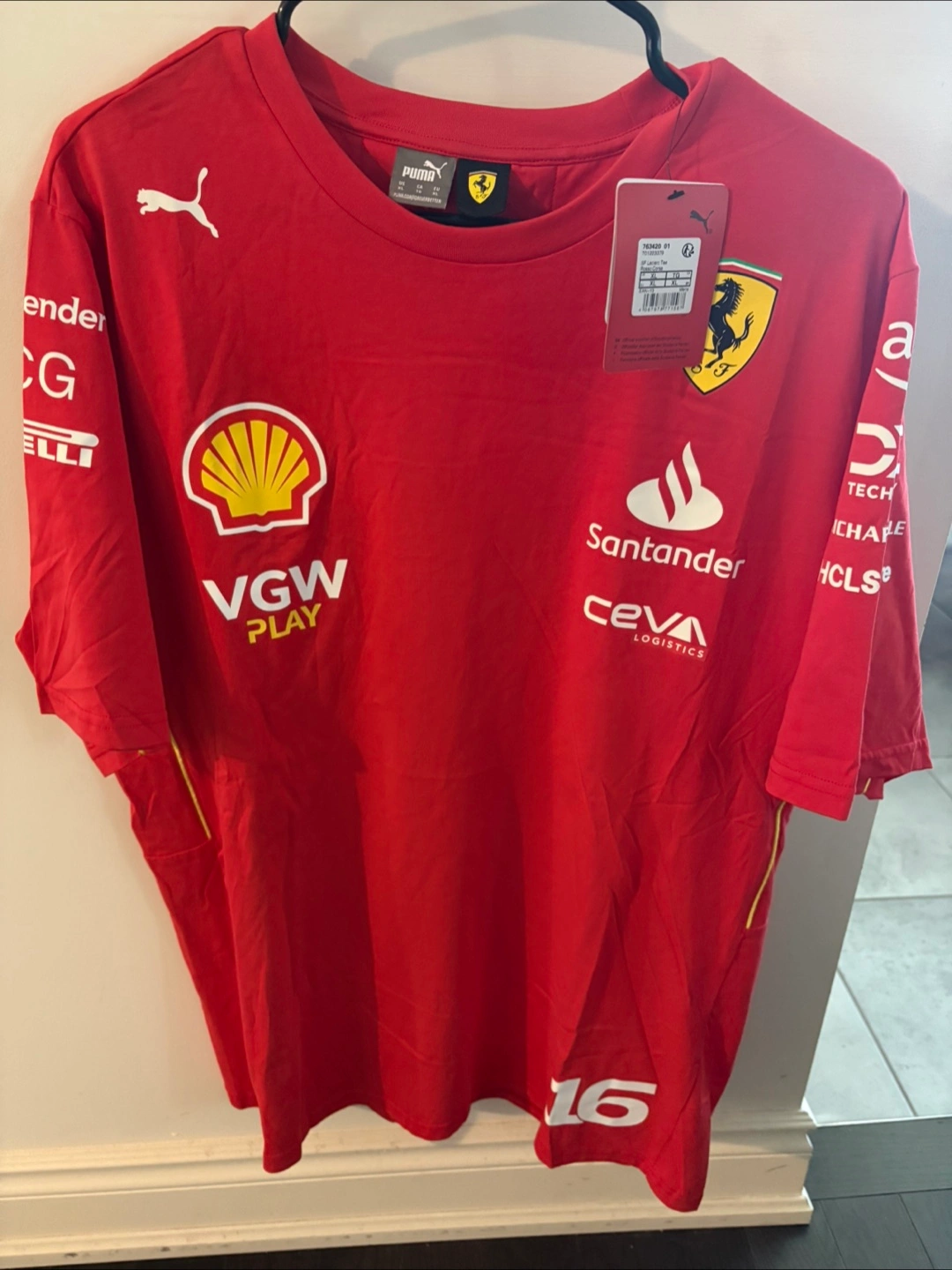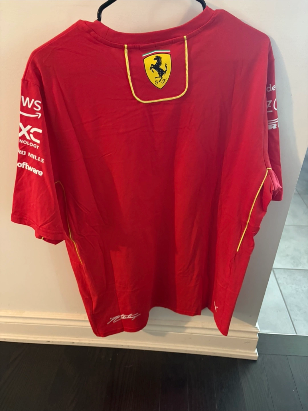 Up for grabs is a Puma Ferrari F1 t-shirt It's a vibrant red and features the iconic Ferrari logo. Perfect for any racing fan!