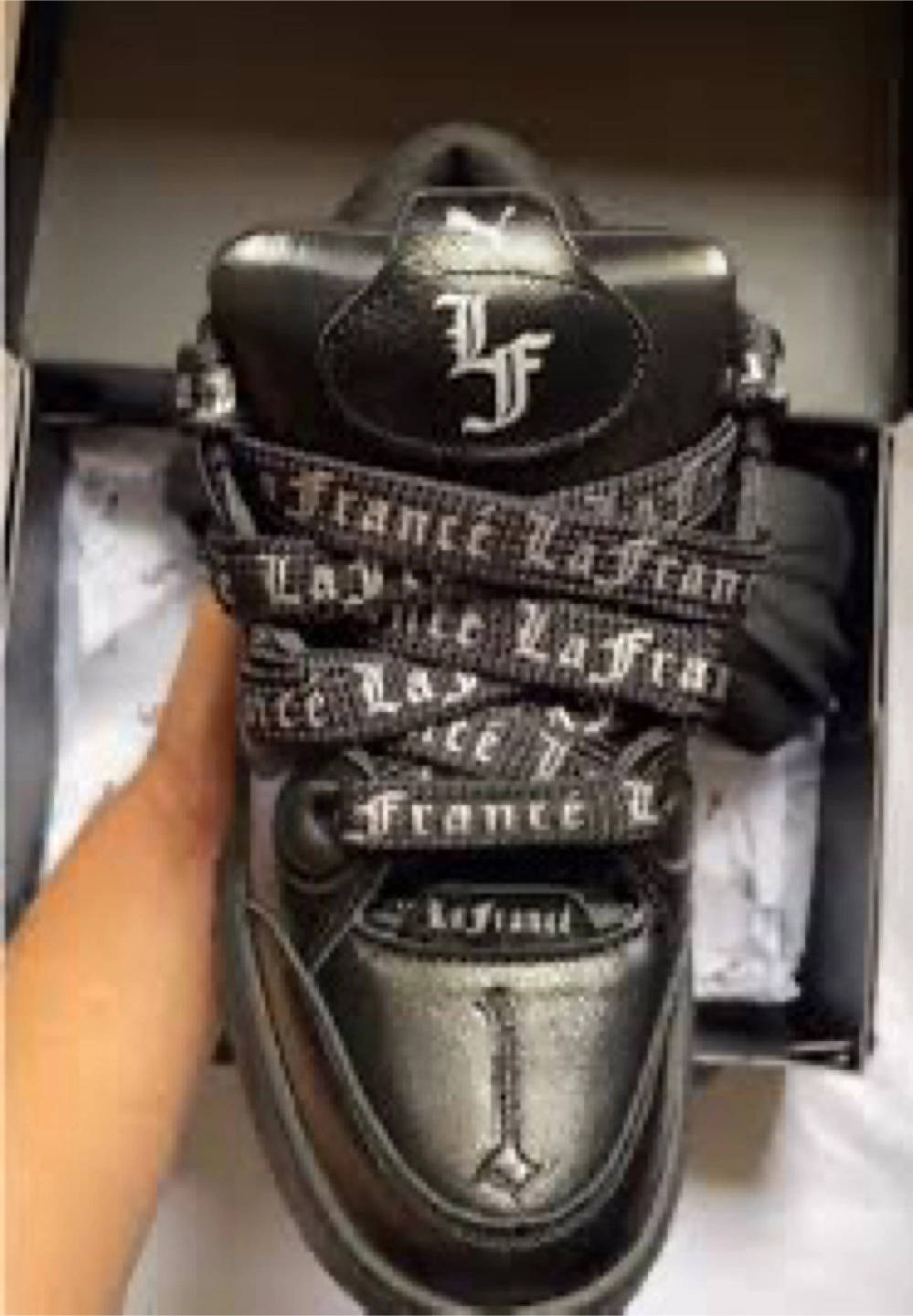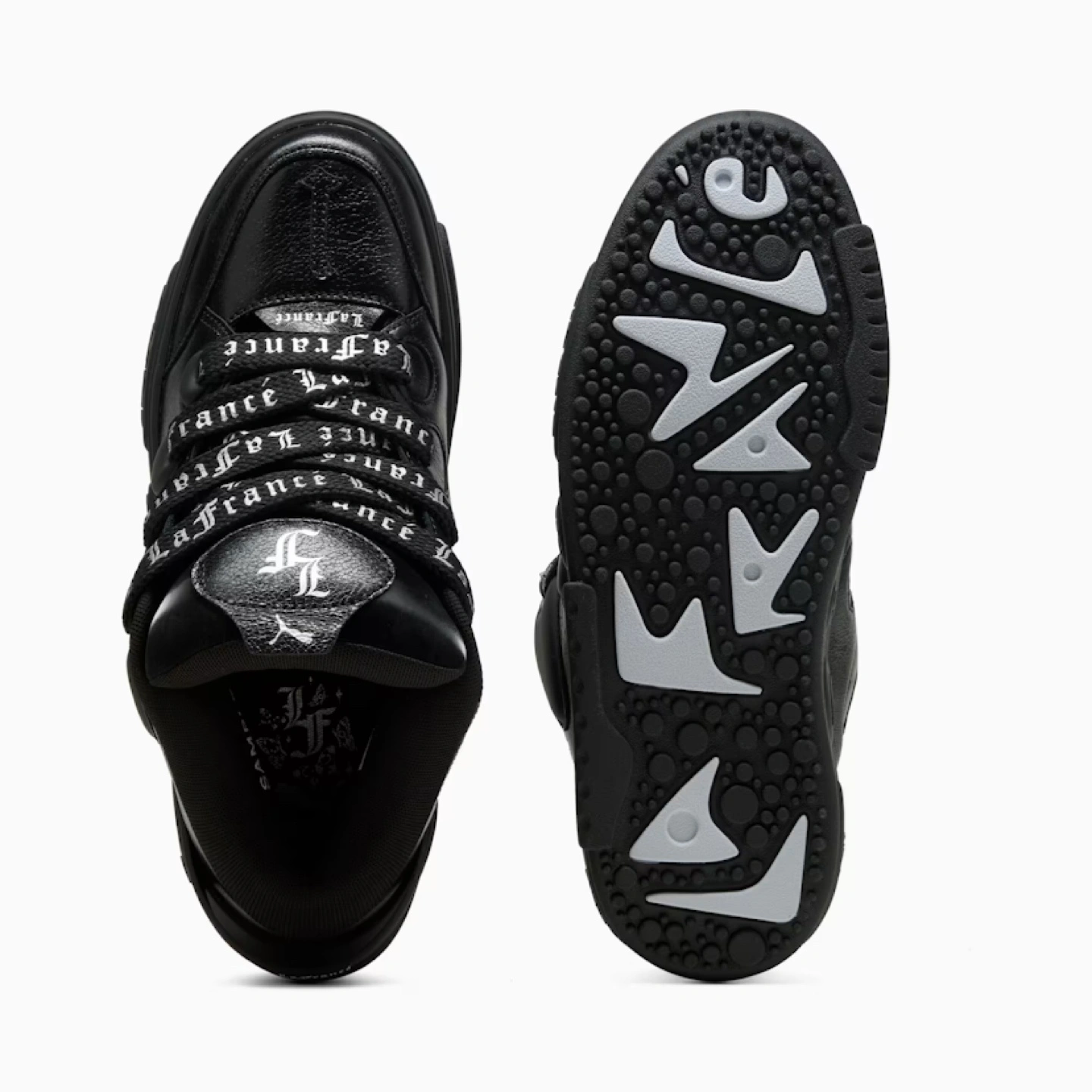 Selling a pair of Puma LaFrance sneakers in black. These shoes are in great condition and come with the original box. The laces have the text 'LaFrance' written on them.