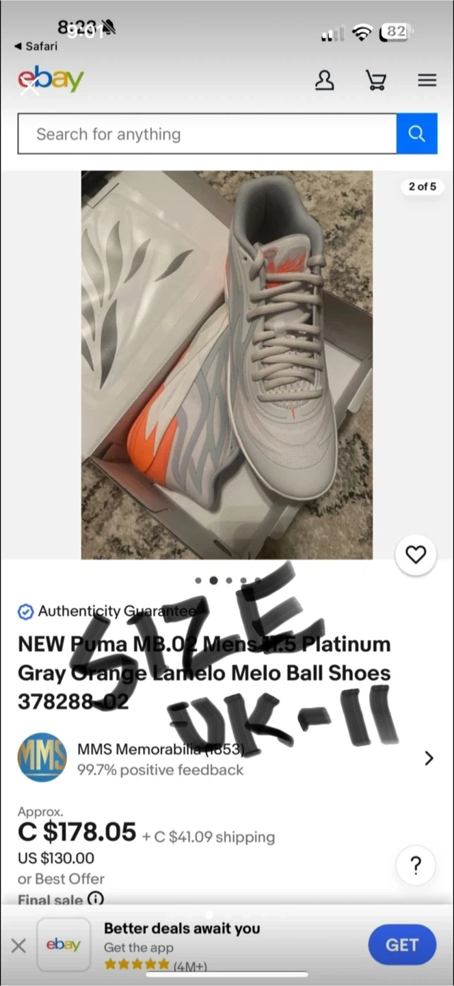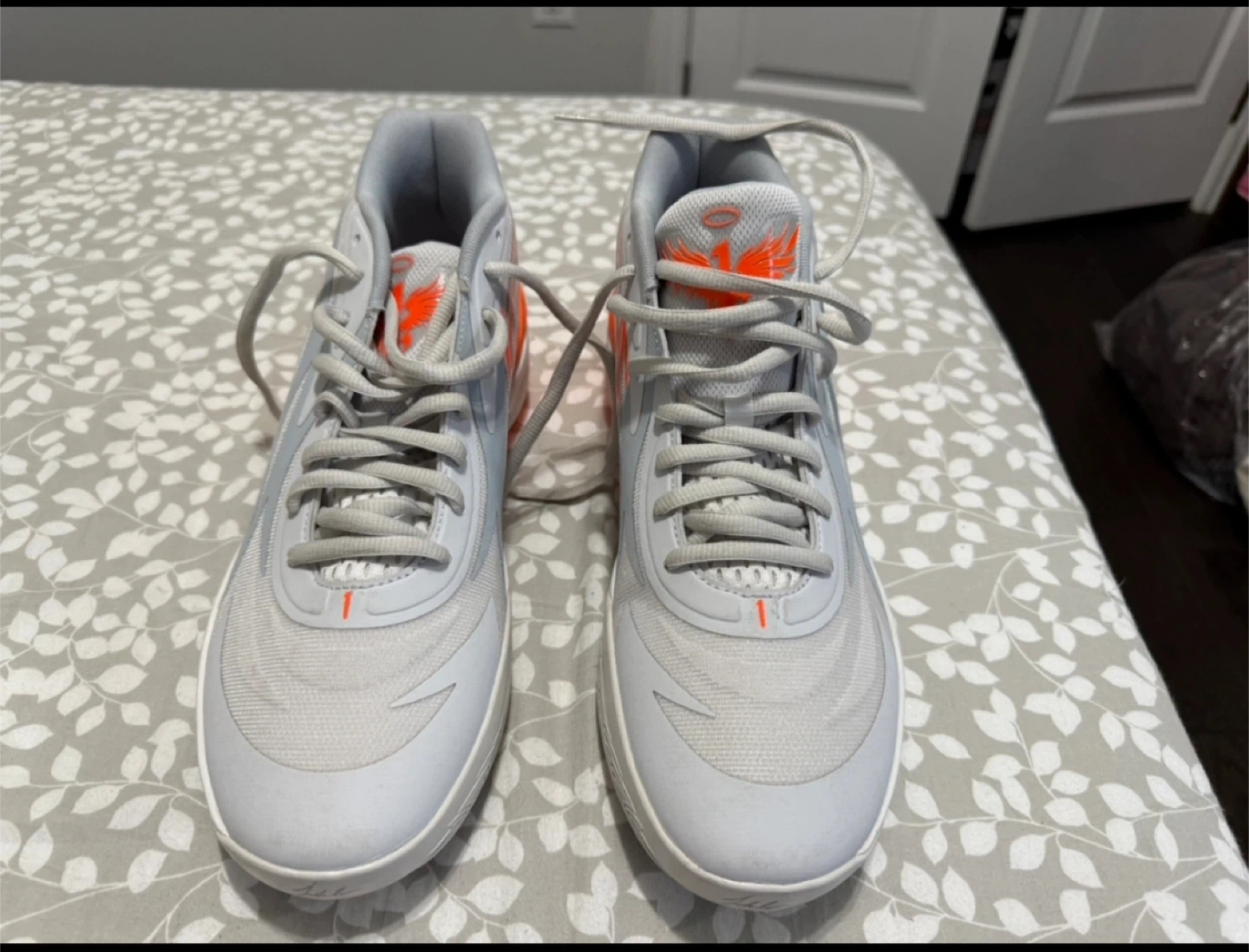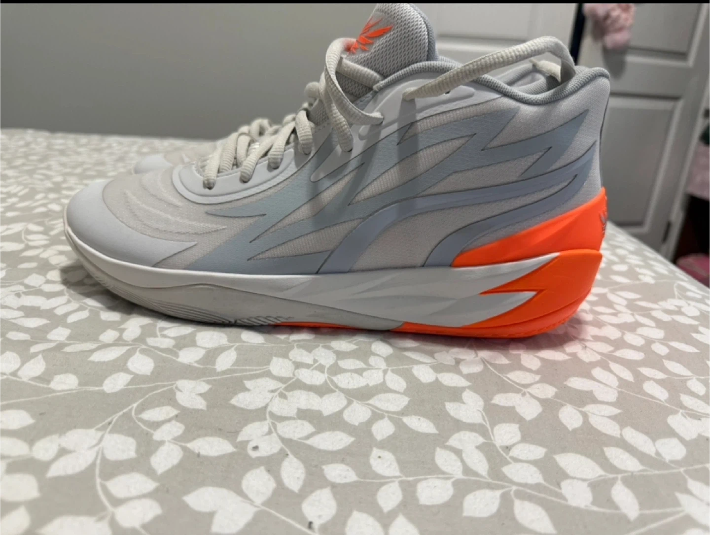 Selling a pair of Puma MB.02 basketball shoes in platinum gray and orange. They come with the original box!