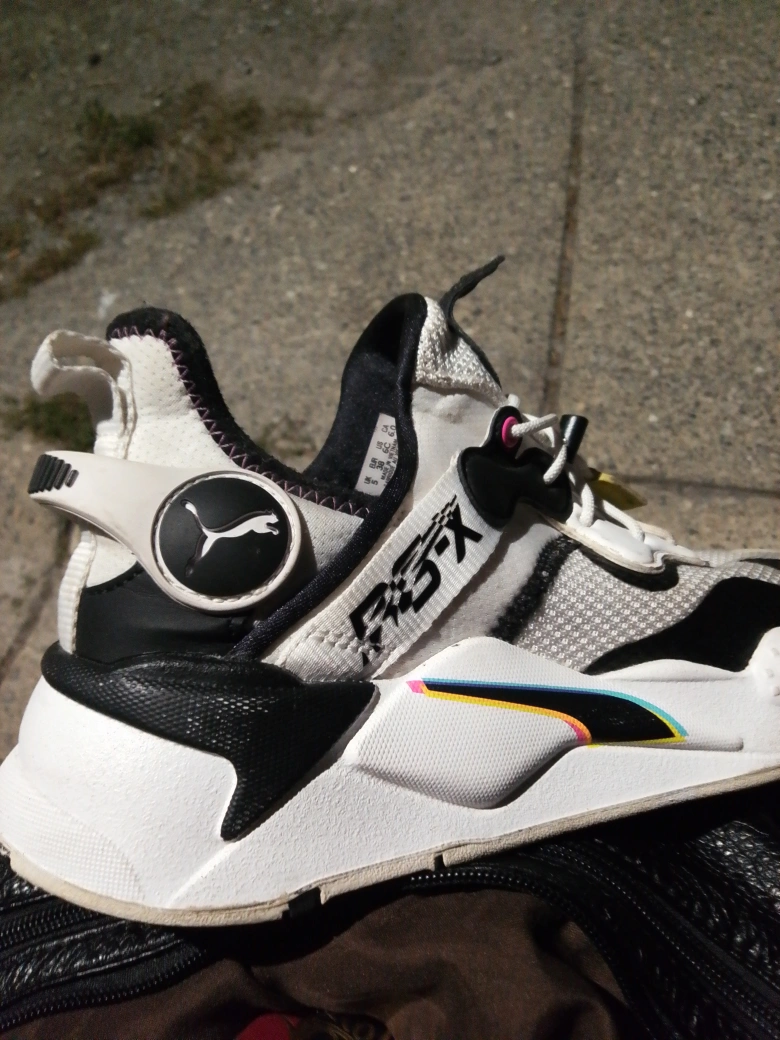 Selling a pair of Puma RS-X sneakers in white and black & hints of neon splash in the colour way. Perfectly good used condition and so comfy, marked as men's, but last time I checked, I'm a woman., size 8. The RS-X models are known for comfortable fit and eye-catching design.They feature the iconic Puma logo and a unique, chunky sole. Grab them while you can!