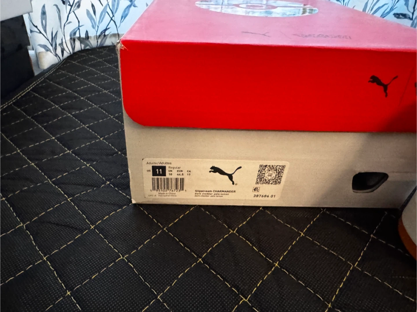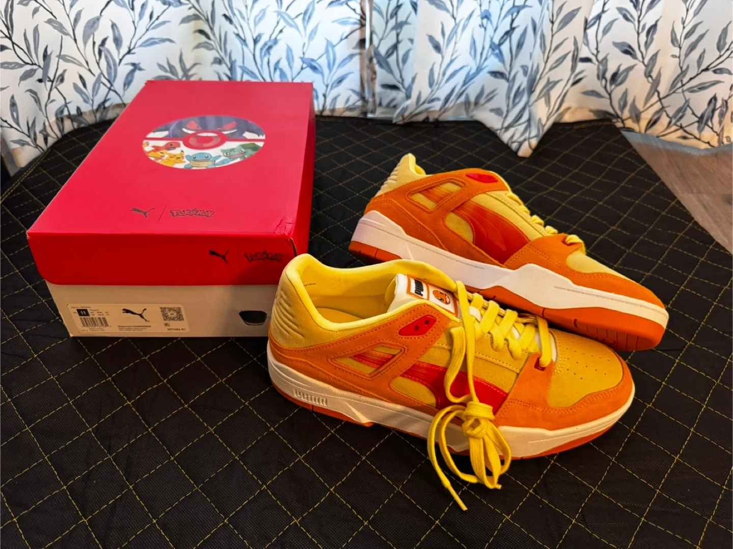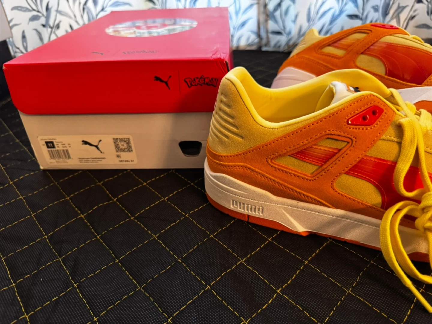 Selling a pair of Puma Slipstream Charmander Pokemon shoes in size 11. They come with the original box! These shoes are a fun collaboration and feature a vibrant orange and yellow colour scheme. Perfect for any Pokemon fan or sneaker enthusiast!