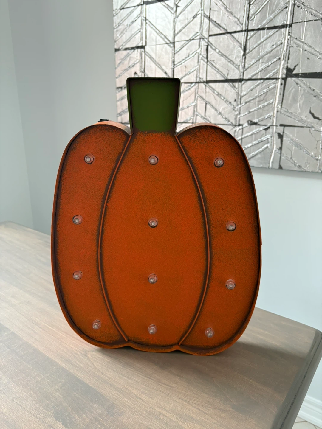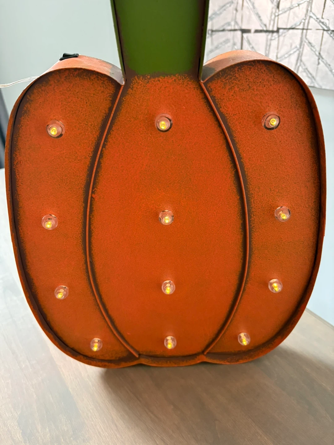 Cute pumpkin decoration with built-in lights! Perfect for adding a festive touch to your home this fall season Metal