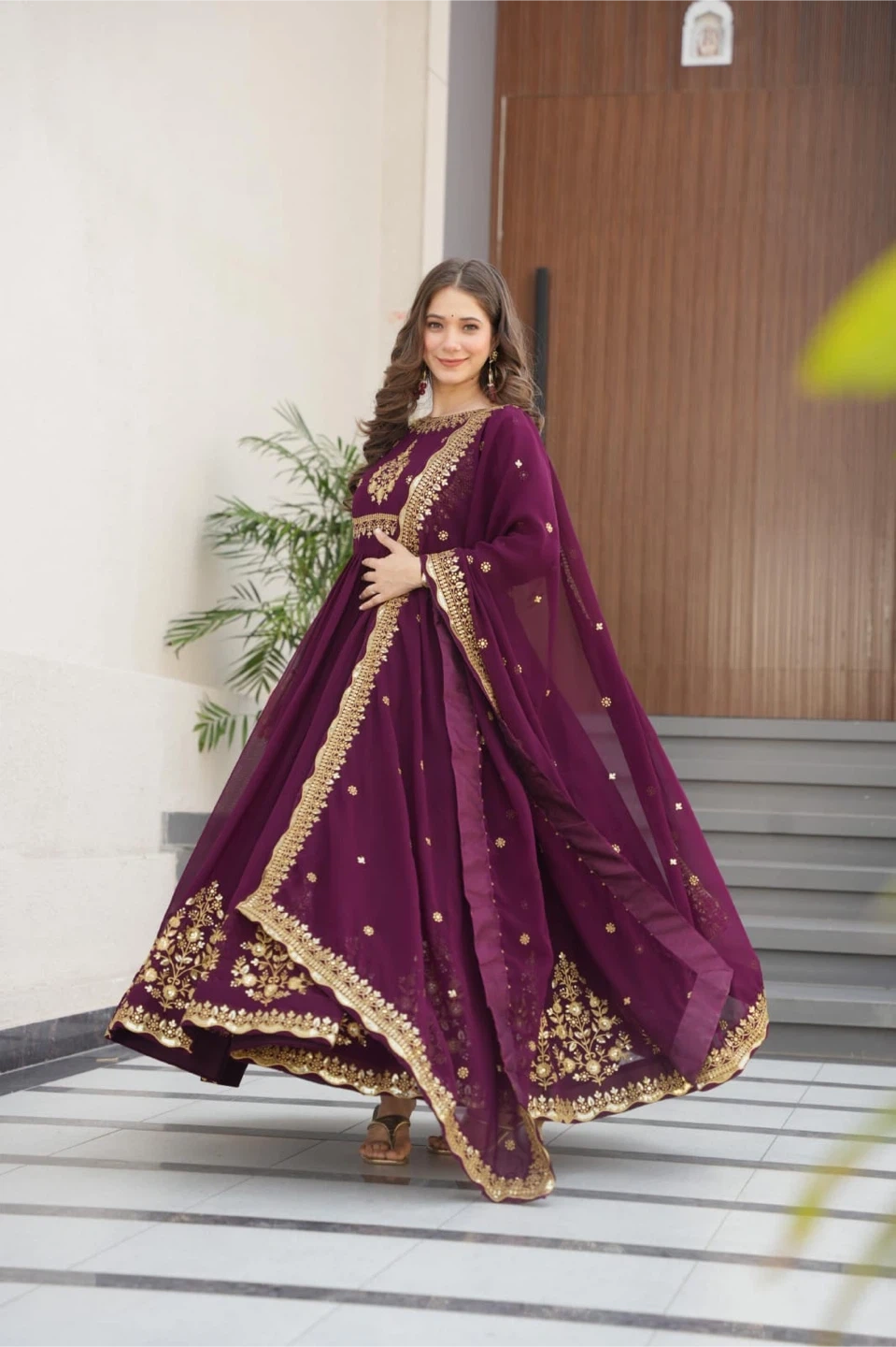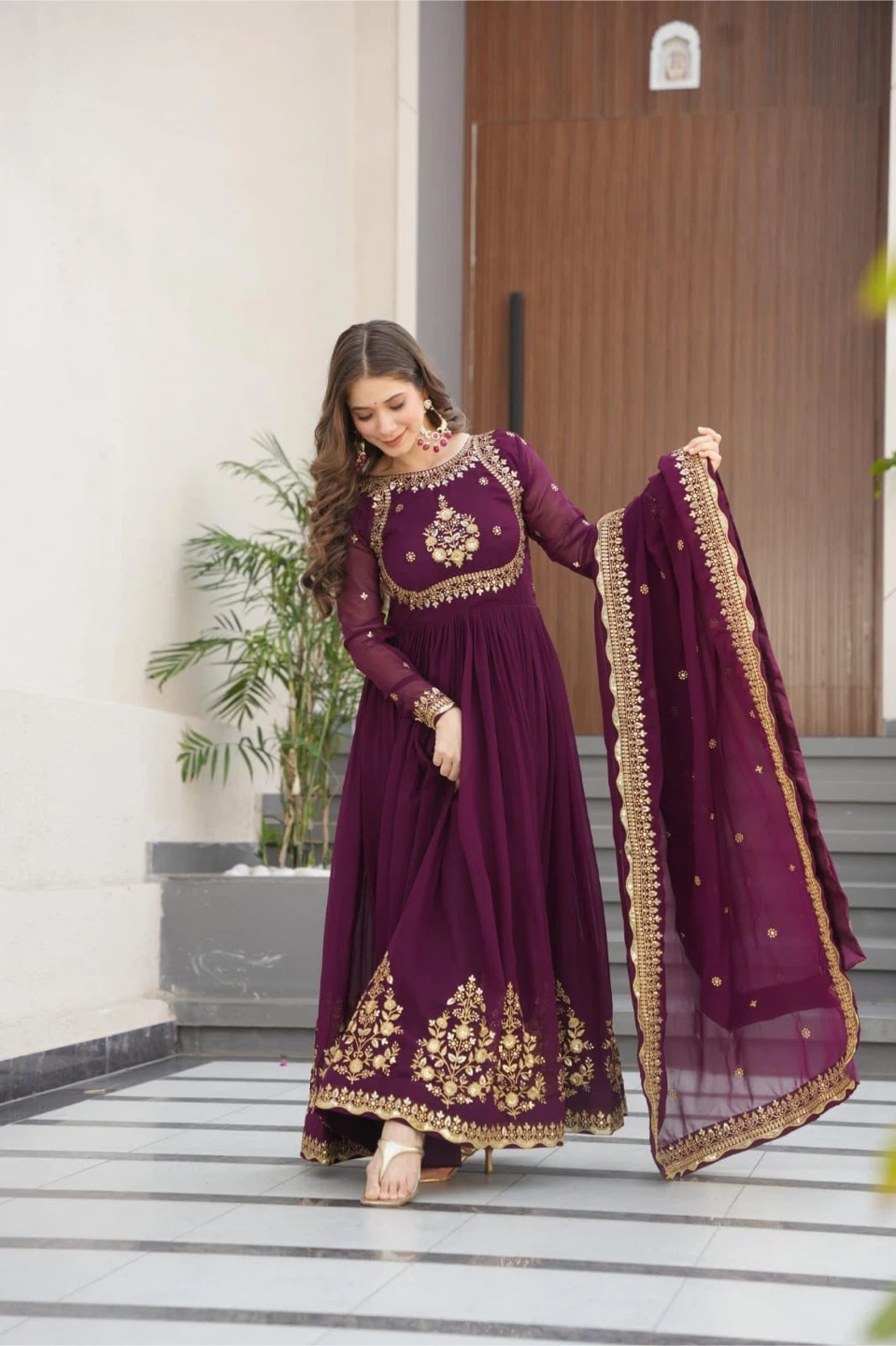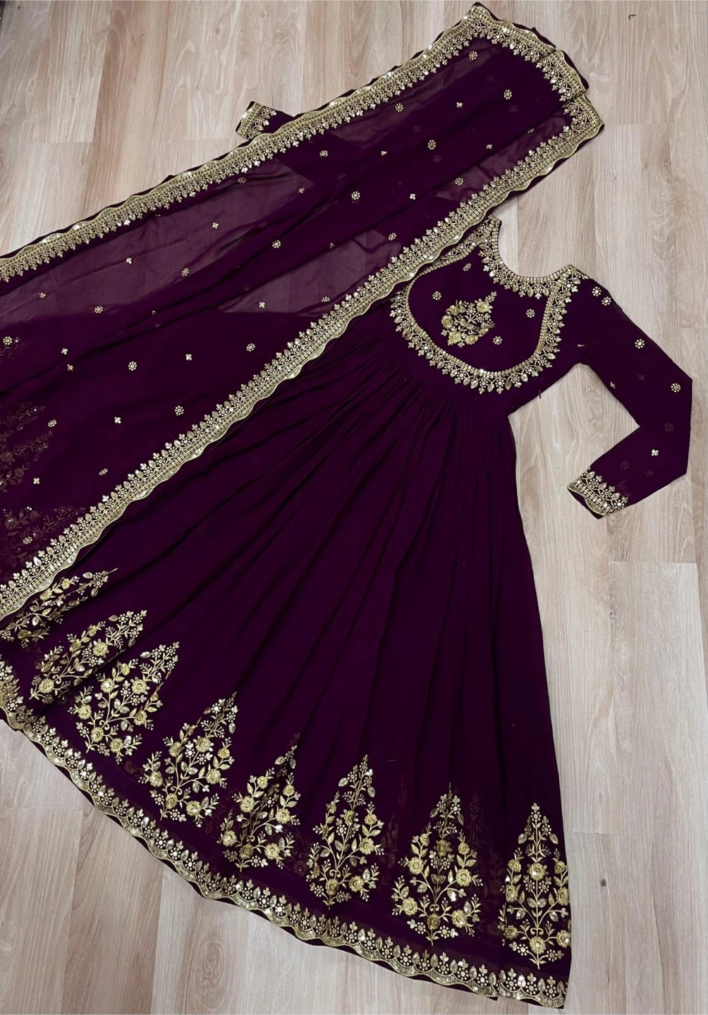 ▶️ PACKAGE CONTAIN:-Gown-1,Dupatta-1 ➡️ *GOWN* :- 👉🏻 FABRIC & WORK:- Faux Blooming Georgette with Zari Thread & Sequins Embroidery. 👉🏻SIZE:-M(38''),XL(42''), 👉🏻LENGTH:-56 INCH 👉🏻FLAIR:-3.5 MTR 👉🏻LINING:-Cotton (Full Inner Top To Bottom) 👉🏻SLEEVE:-Full Sleeves 👉🏻NECK TYPE:-Fancy Round Neck ➡️ *DUPATTA* :-👇🏻 👉🏻FABRIC :- Faux Blooming With Reach Embroidery Sequence Work 👉🏻Length:- 2.30 MTR