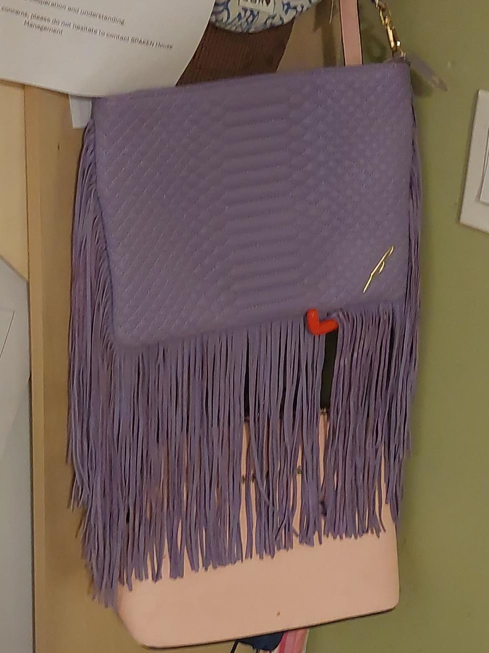 Selling a really cute purple shoulder bag with fringe detailing! It's in great condition and has a vibrant turquoise lining. Perfect for adding a pop of colour to any outfit