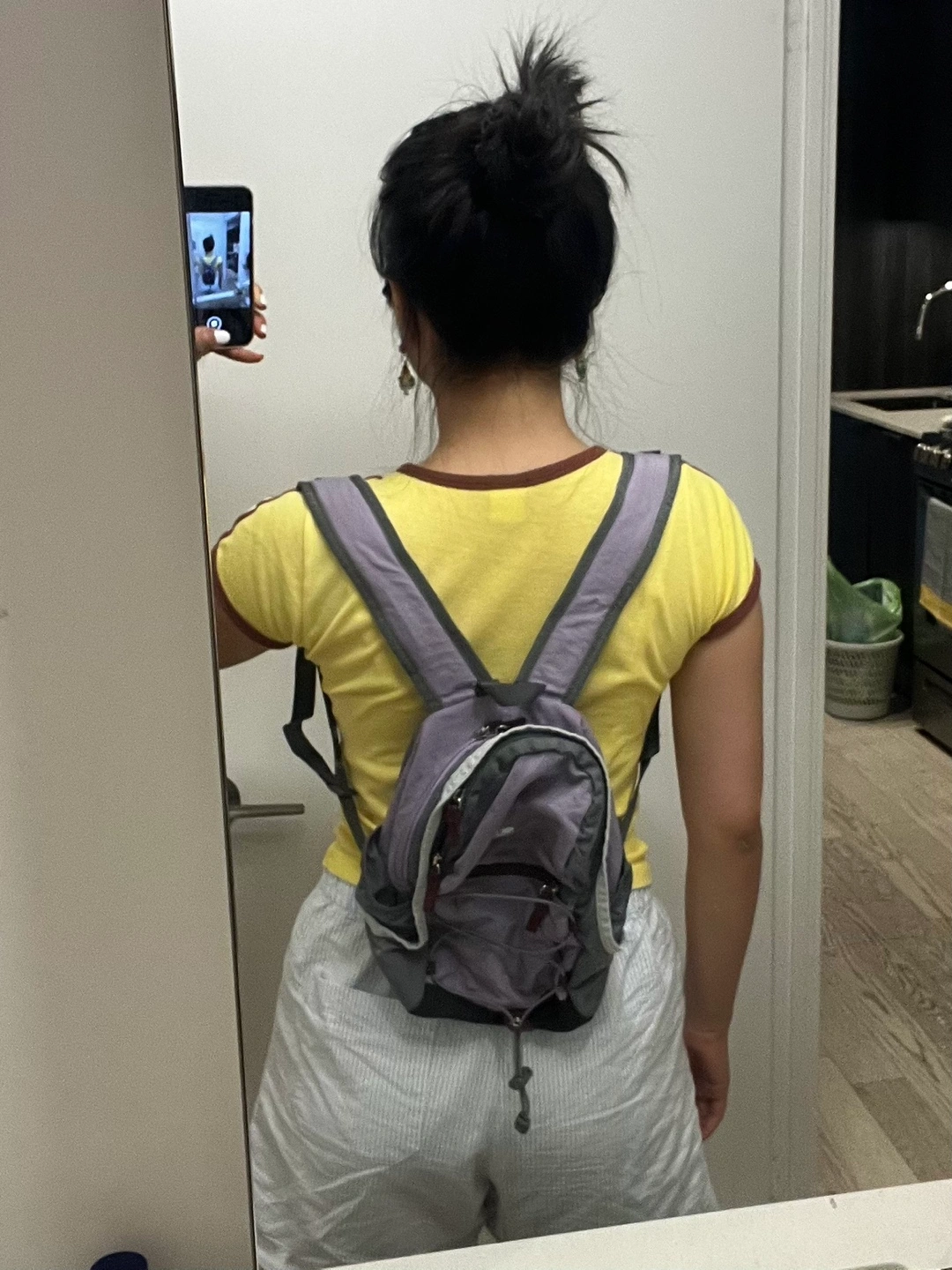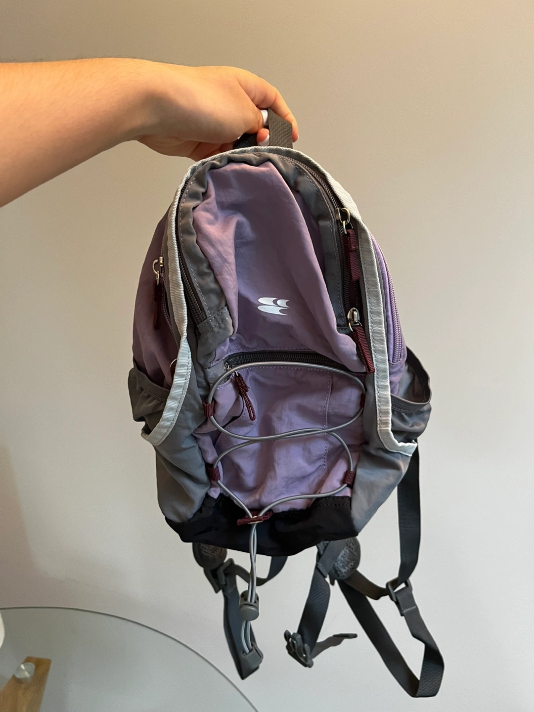 Small bag perfect for travelling or going out, and even hiking! I barely used it. It has multiple pockets, and it actually can hold a lot of stuff!