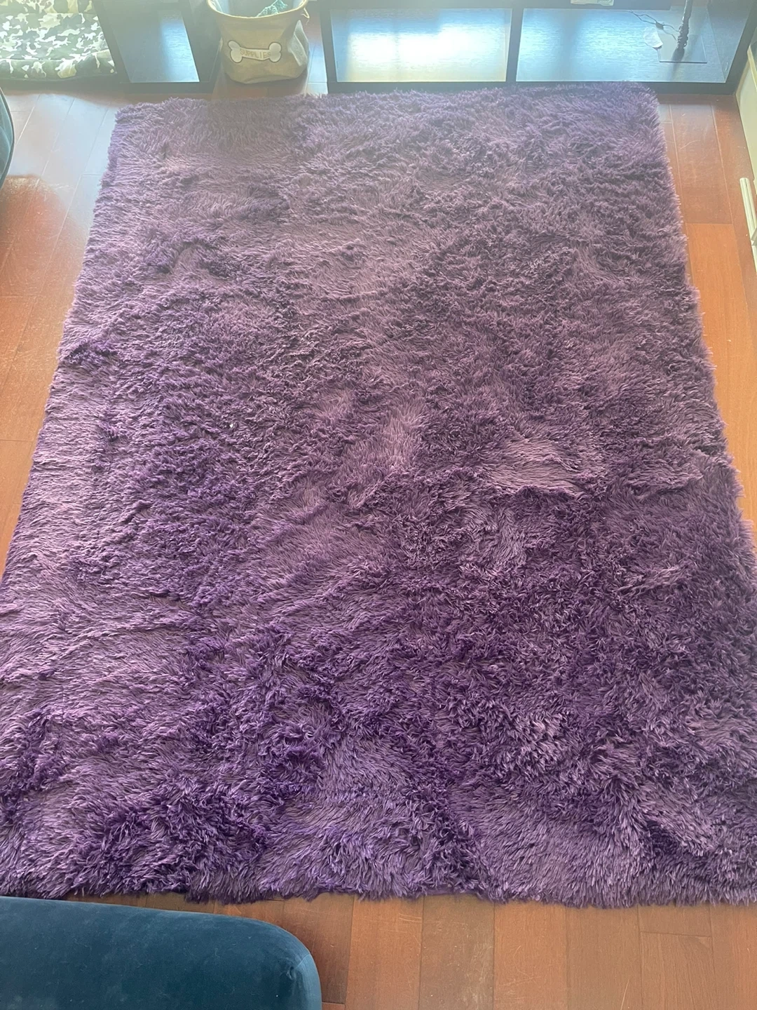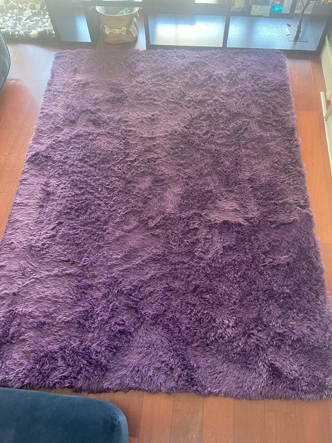 Selling a cozy purple shag rug! It's in great condition and would add a nice touch to any room. The rug is soft and plush, perfect for adding warmth and texture to your space. It’s brand new, just bought it yesterday, wasn’t the right shade of purple I was looking for.