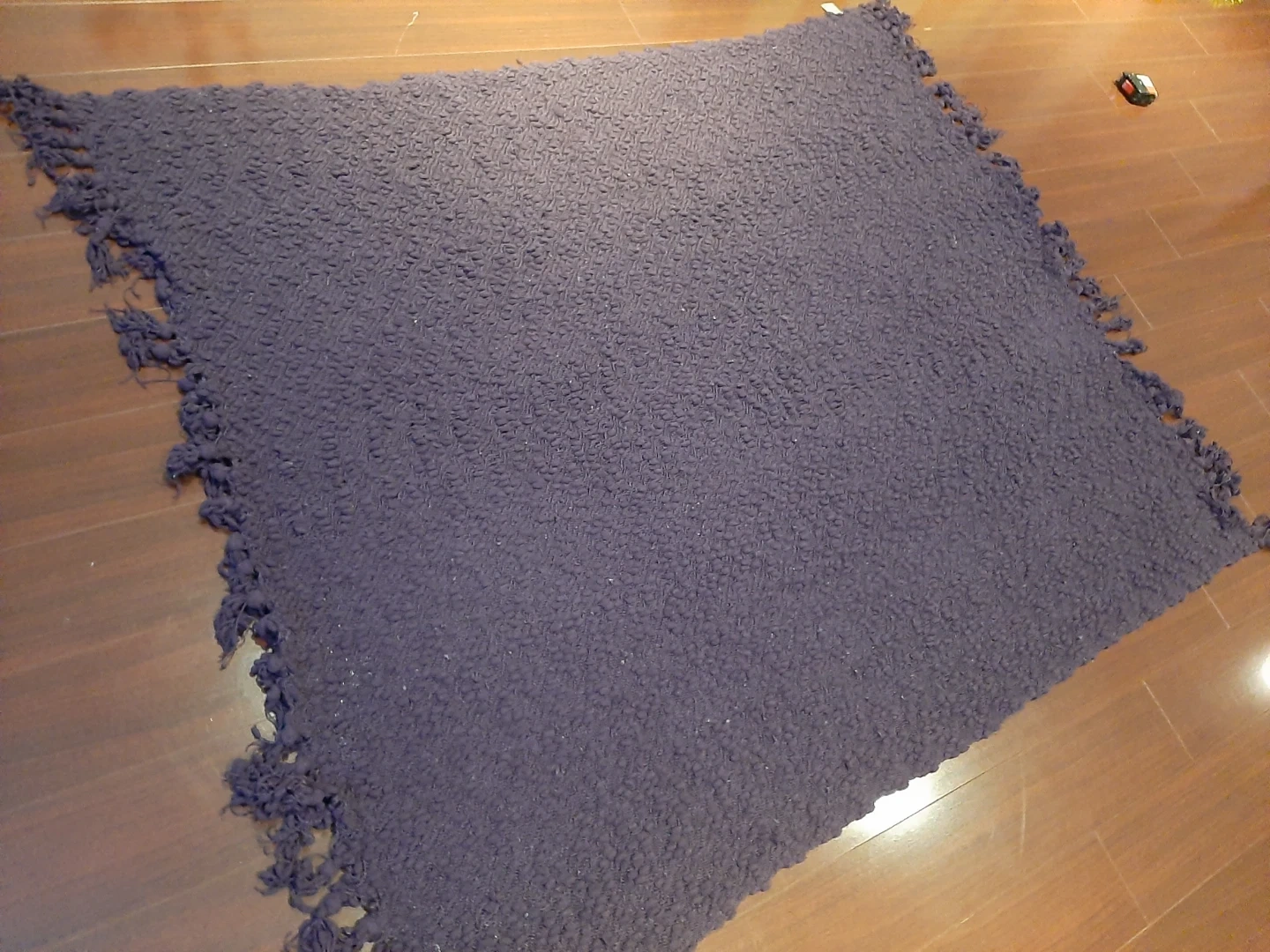 Soft, textured throw blanket. Purple colour. Features fringe along all sides. Great for adding warmth and style to your living space. 64 inches x 47 inches. Pick up Scarborough.