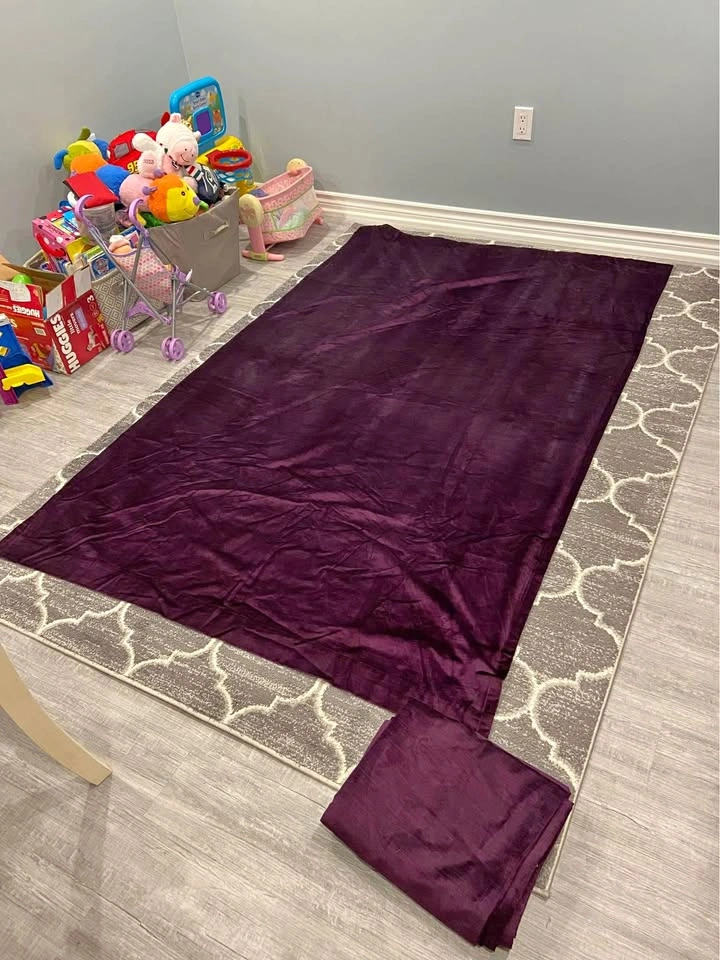 52” wide x 82” long with back tabs for hanging. Fully lined.