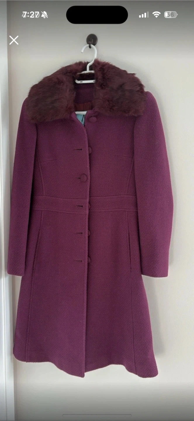 Selling a lovely purple coat, perfect for cooler weather! It features a faux fur collar and a wool blend material. The coat is in great condition and ready for a new home size mejume pick up cash only
