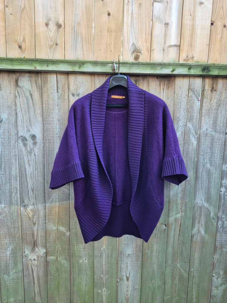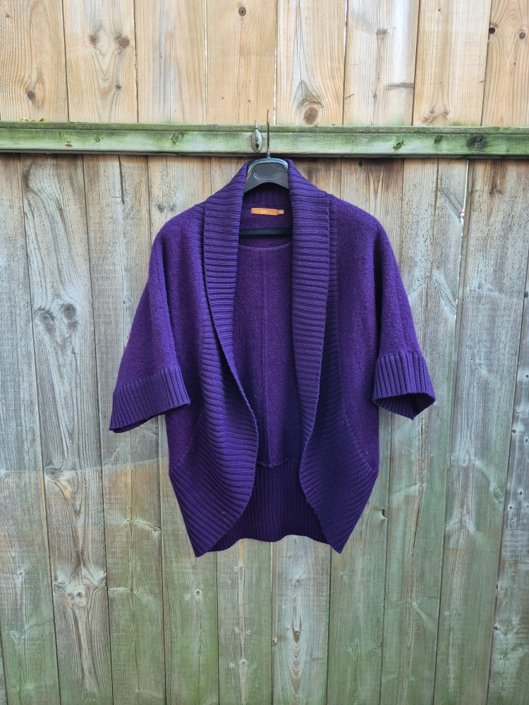 Purple size large short sleeve open cardigan Pick up only no meet-up. Main and Danforth East York Woodbine/ Lumsden Cash only