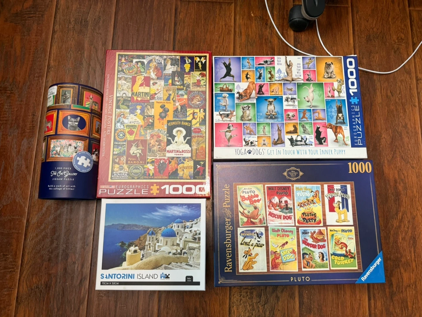 $20 for all 5 Paid between $15 and $20 for each puzzle. Put together once, all pieces are there.