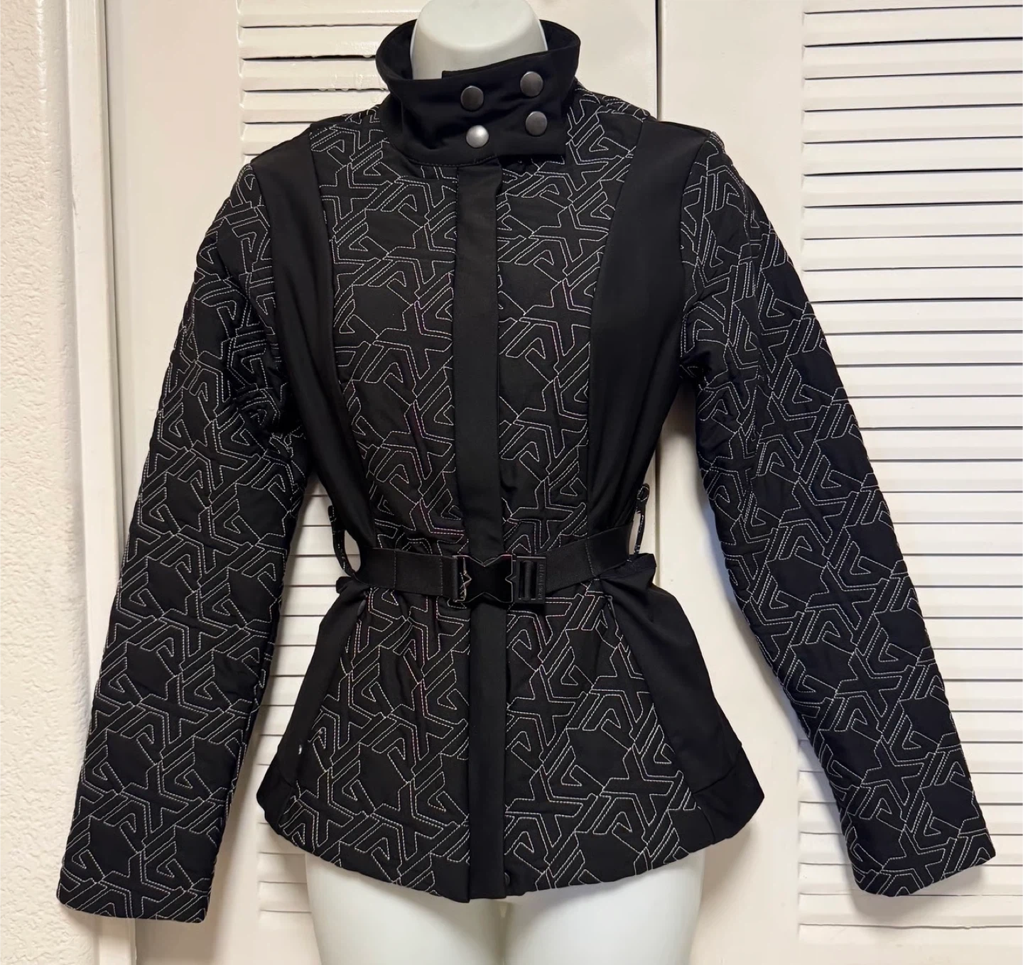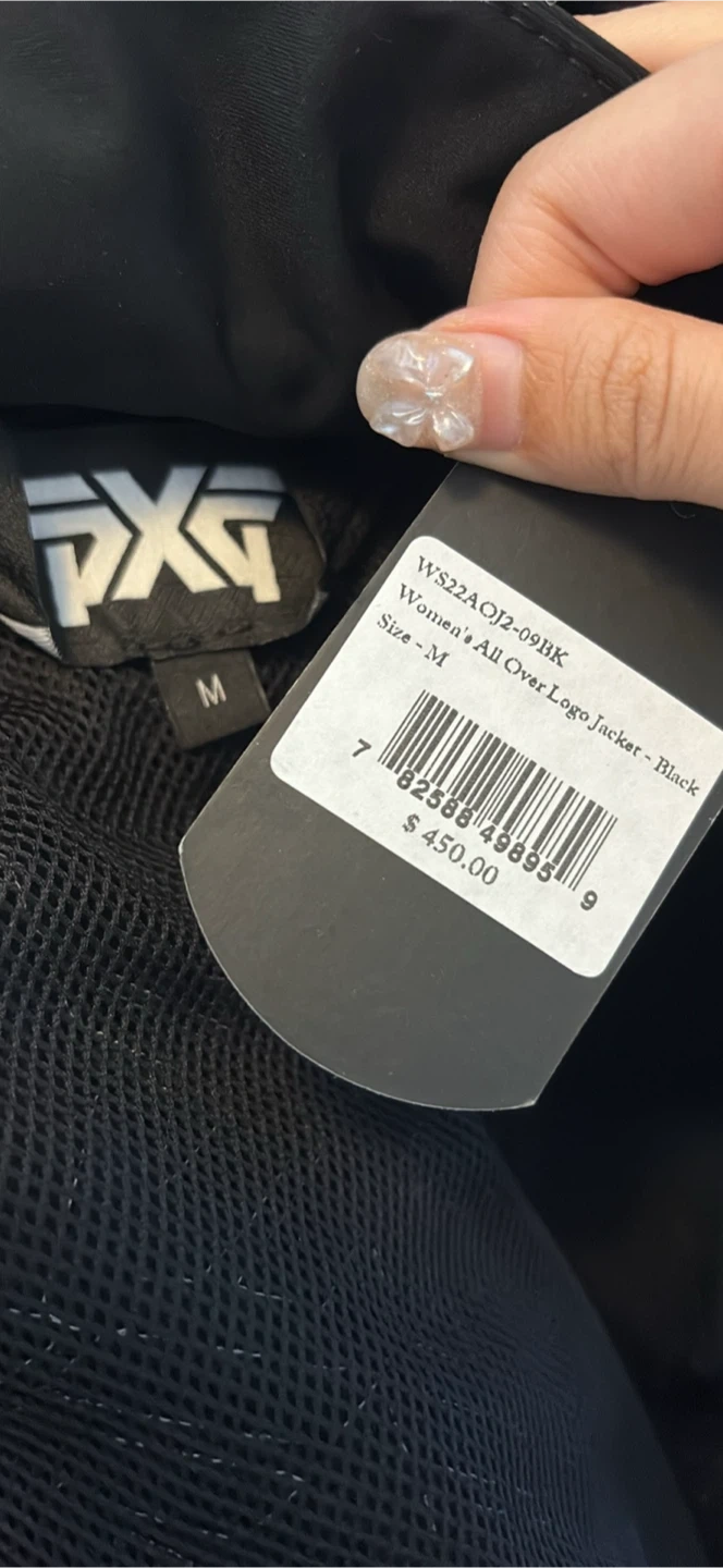 Selling a PXG Women's All Over Logo Jacket in black, size medium. I bought this authentic PXG jacket online for $450, but it’s a bit small on me. It’s labeled as a size medium, though I’d recommend it for someone who typically wears a size small or a smaller medium. This jacket is perfect for the season especially for golfing. The high collar with snap buttons adds a chic, moto-inspired touch while keeping you warm, and the adjustable waist belt creates a flattering fit. Condition: Never worn outside. Bonus: Comes with the original PXG shopping bag.