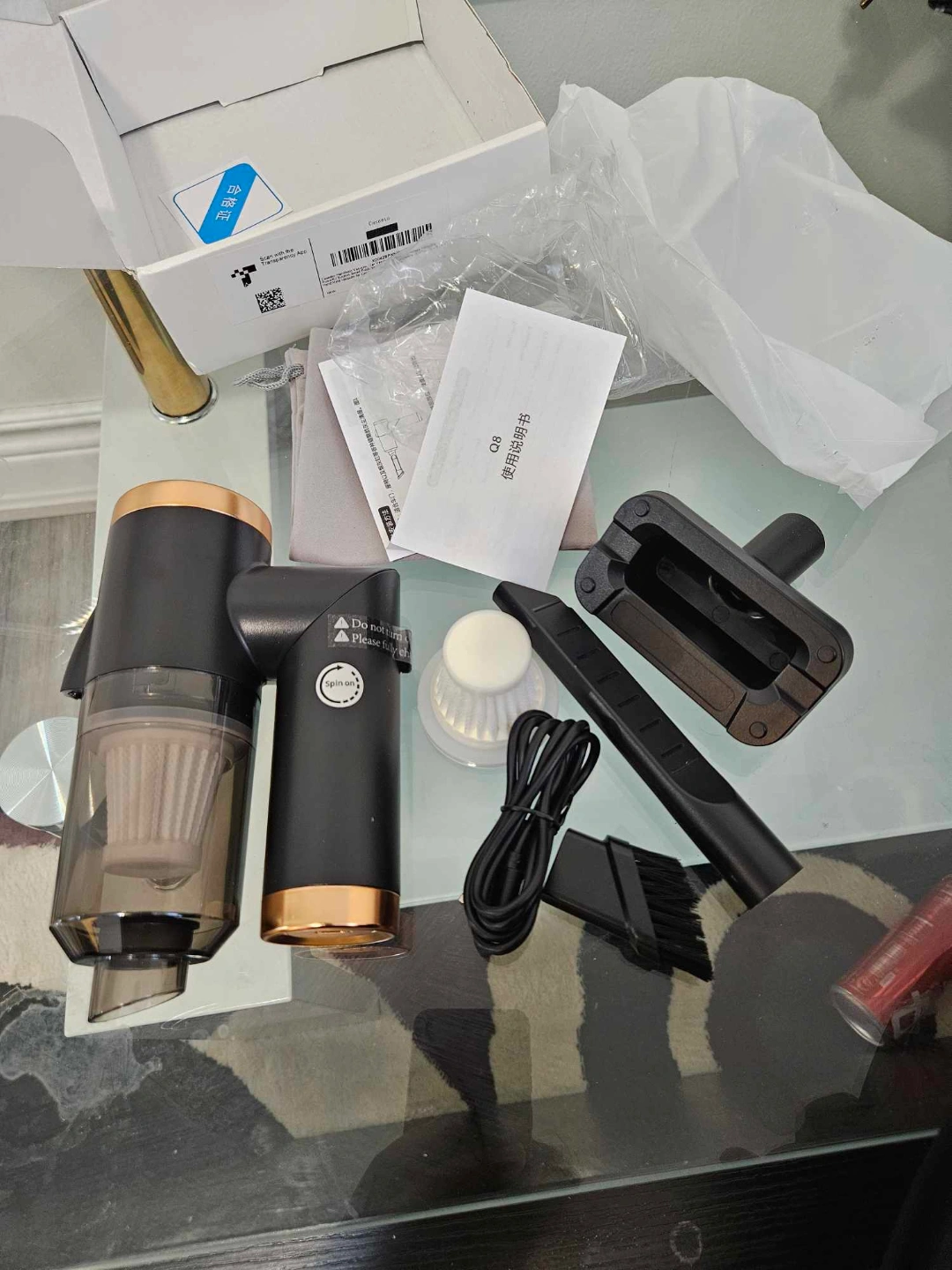 Cordless handheld vacuum. Compact and easy to store. Includes various attachments. Type-C charging. Dustproof bin.