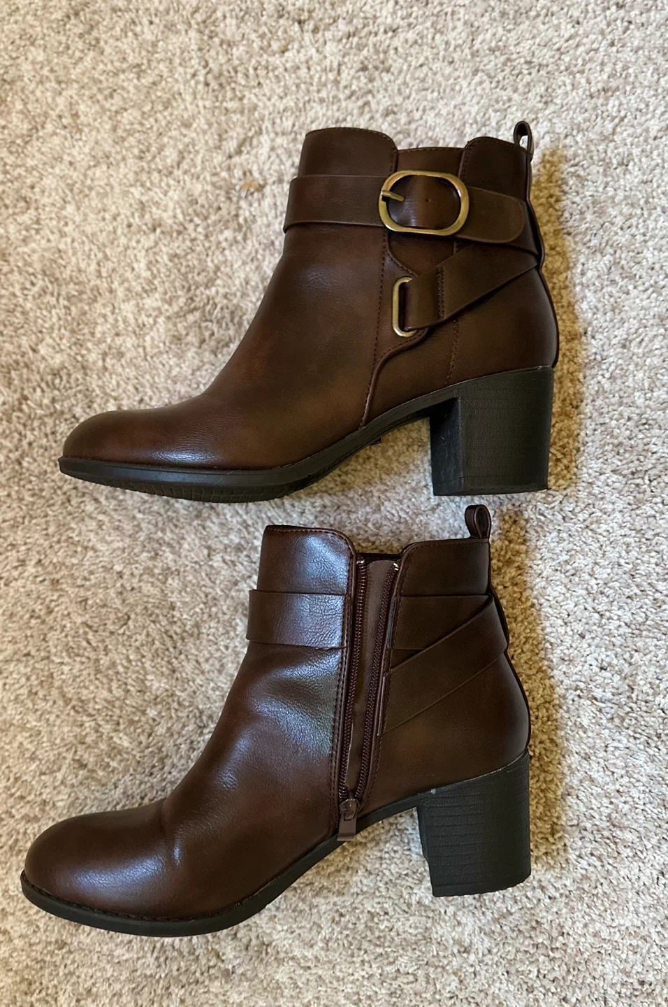 Like new (worn twice). Selling a pair of QH ankle boots in a beautiful chocolate brown colour. They feature stylish buckle detailing and a comfortable block heel. Size 41 (approximately US size 10).