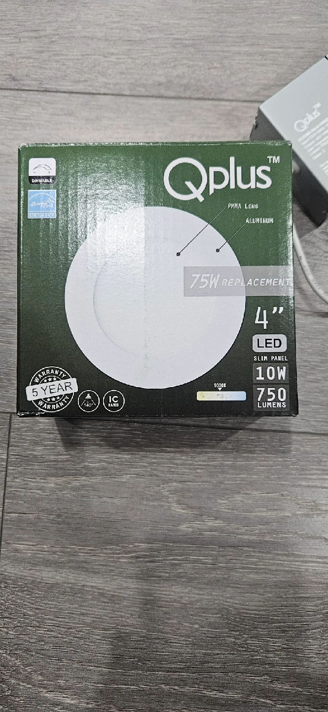 Selling a Qplus 4" LED slim panel light. It's a 75W replacement and emits 750 lumens. It's dimmable and comes with a 5-year warranty. The panel is made of PMMA lens and aluminum. Includes the box i have 32 units available. will split them