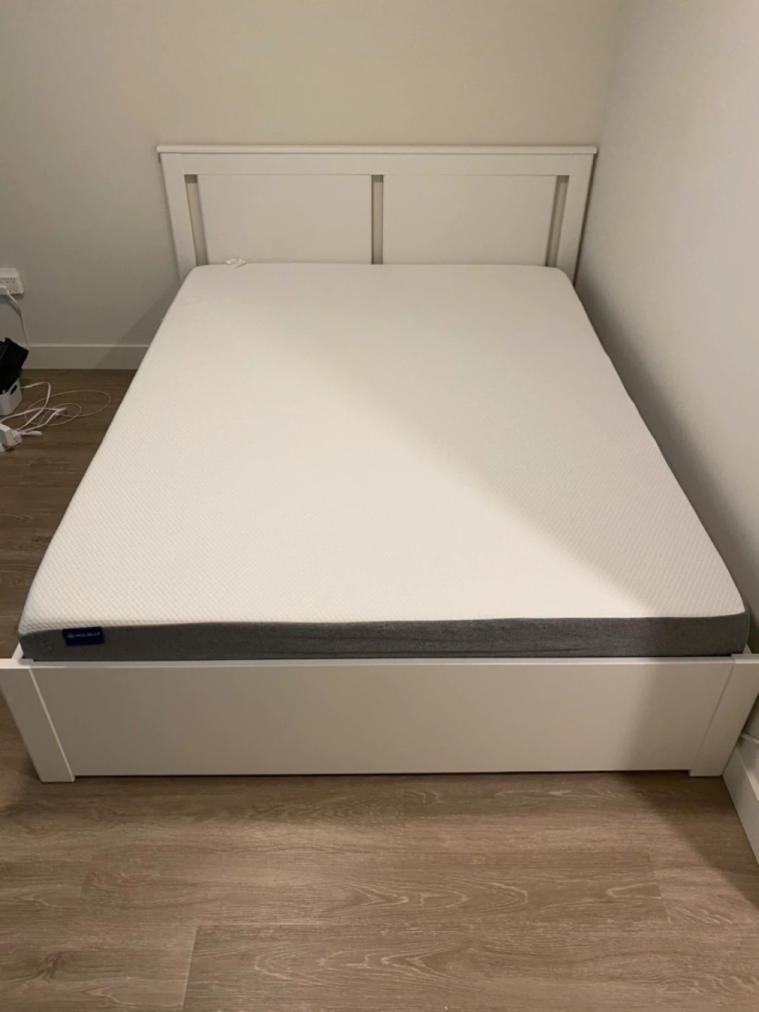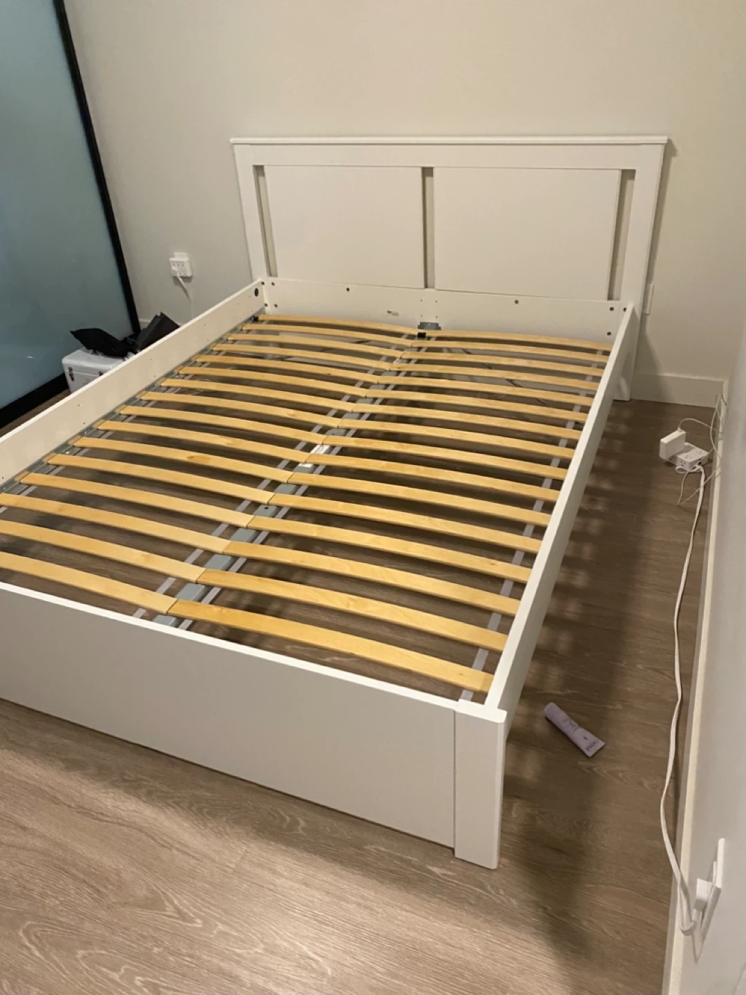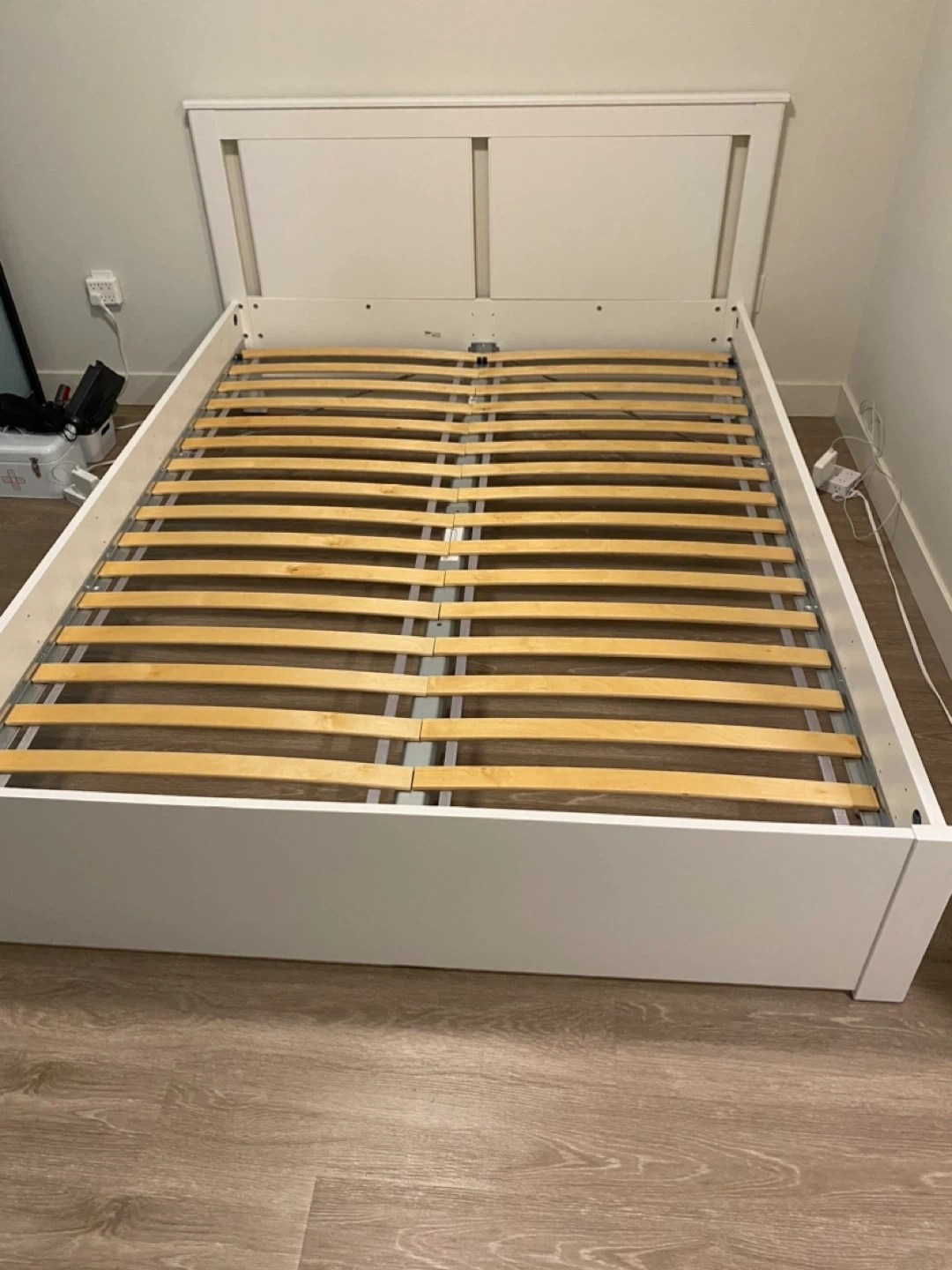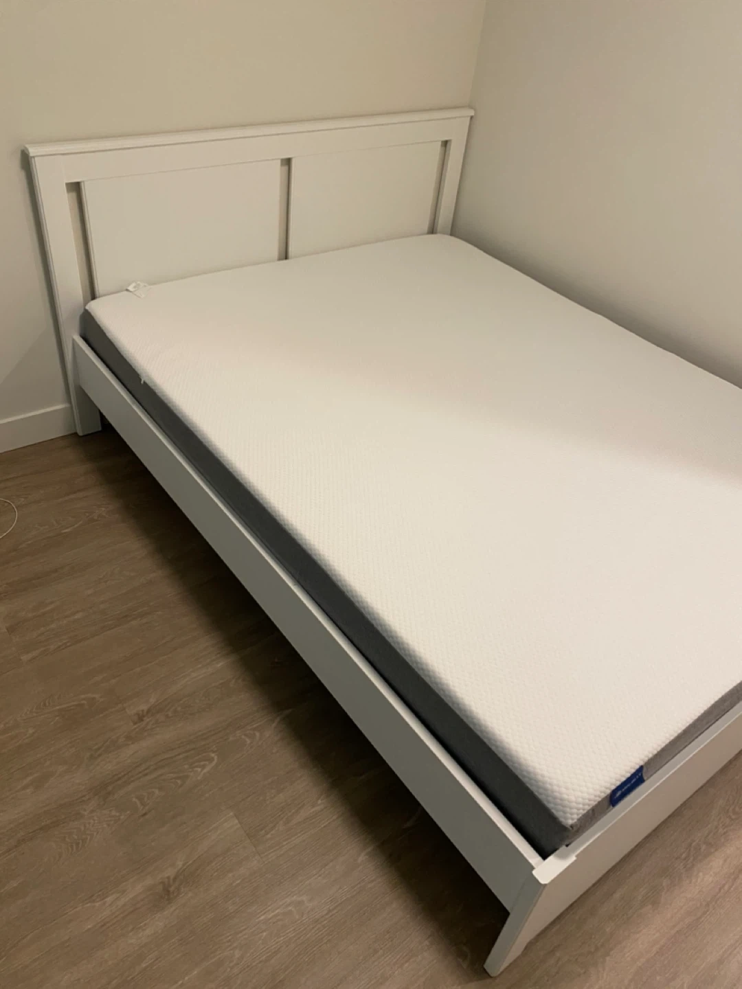 Selling a white IKEA Songesand queen bed frame. Originally bought for $339.00 before tax (mattress extra $150 almost new)firm comfort smoke and pet free . Pick up near surrey centre or can deliver and assemble for extra.