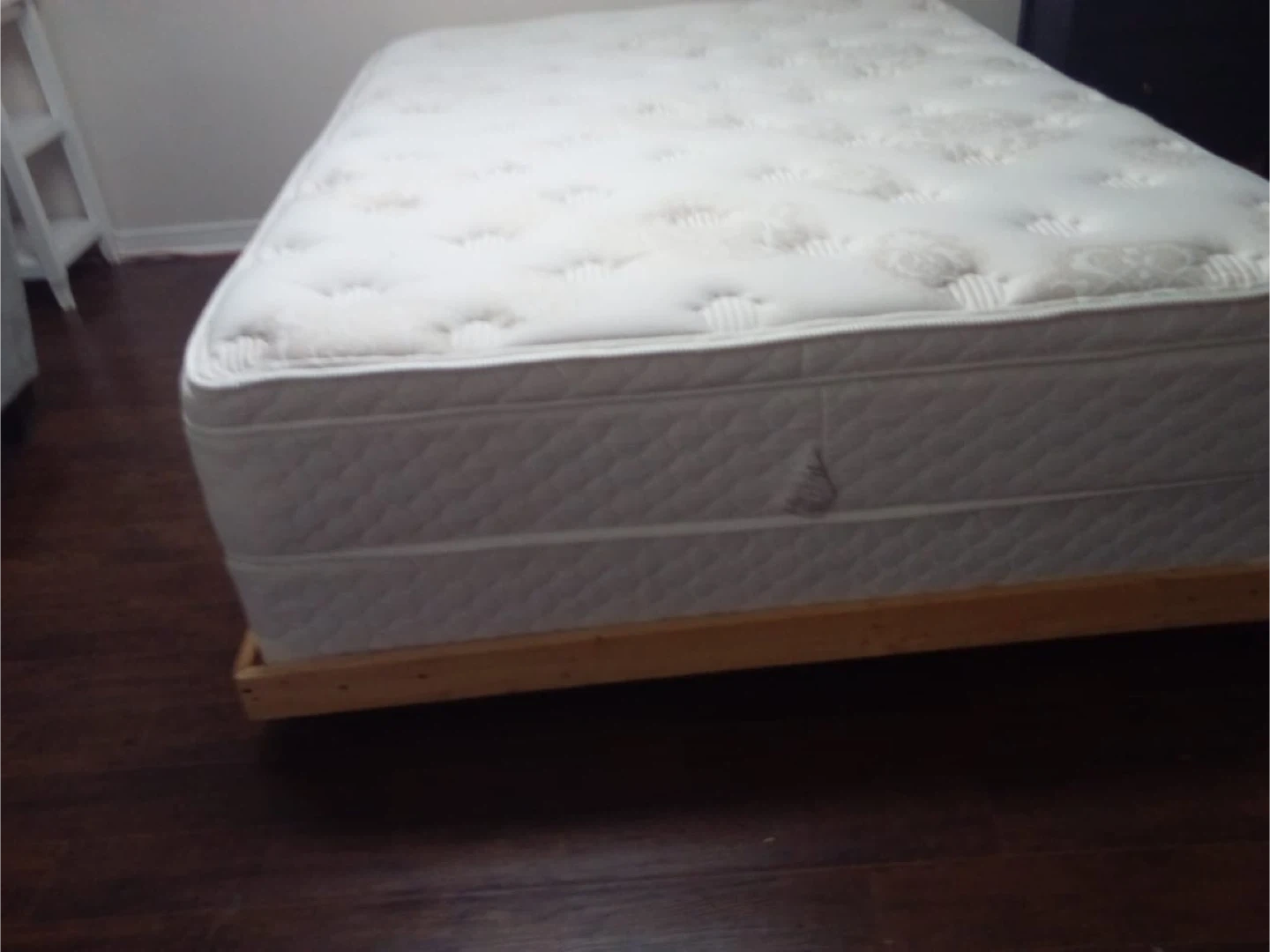 In excellent condition. It was for guests so has barely been used. The frame has wheels that lock so you can easily move it around and then lock it in place. Pick up only Cash only