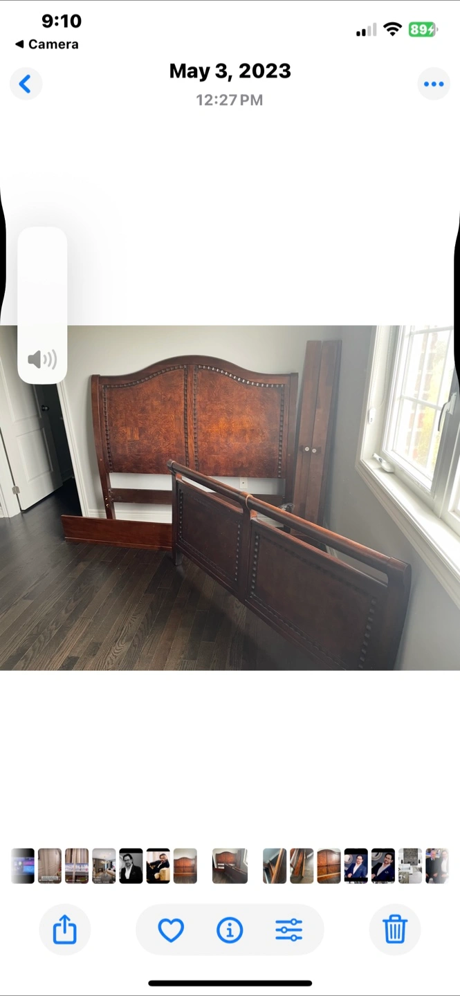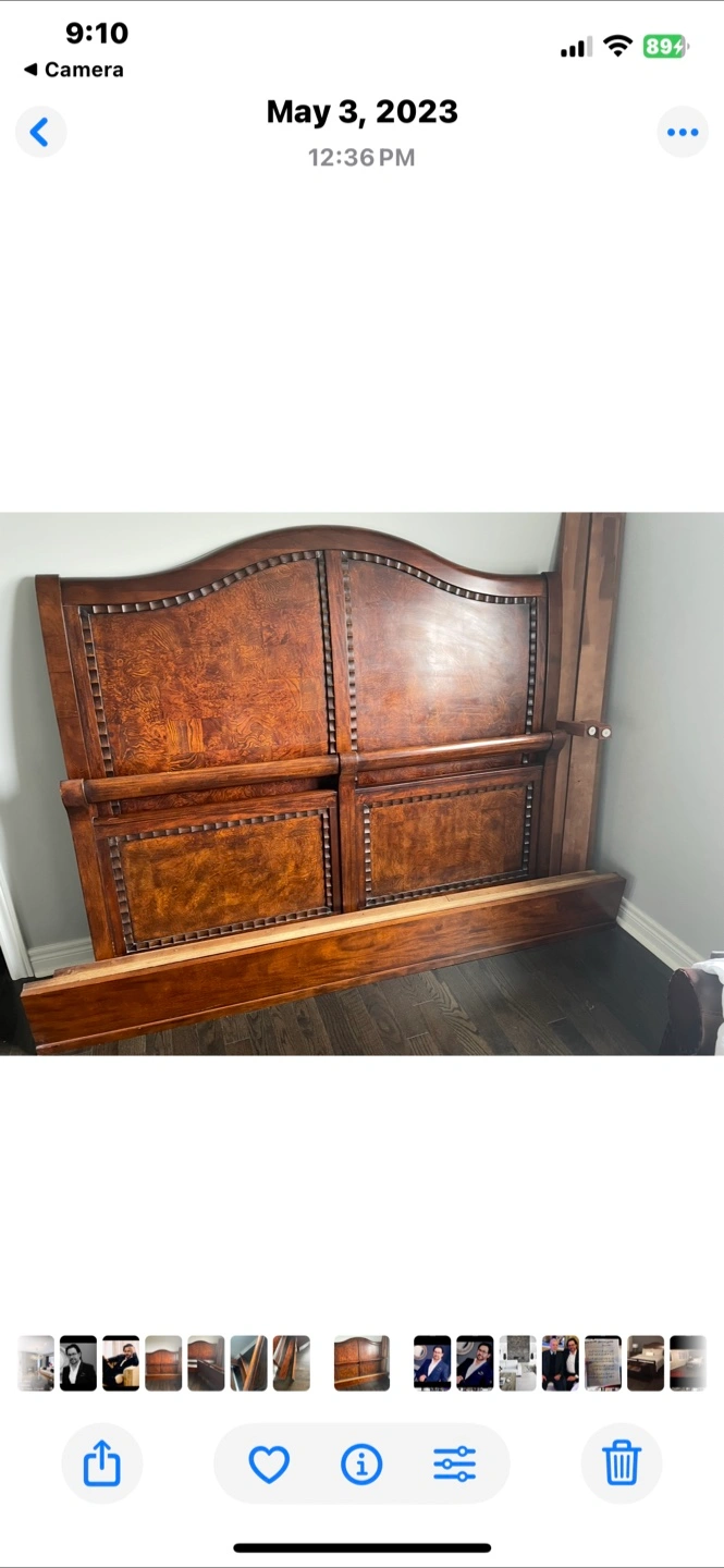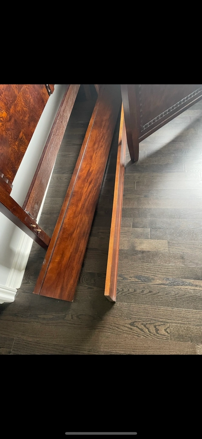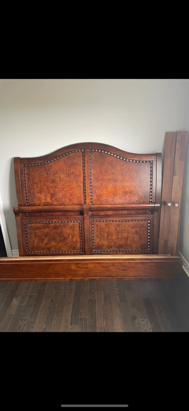 Selling a wood bed It appears to be in good condition and comes with all the pieces needed for assembly. It's a beautiful piece of furniture that would look great in any bedroom