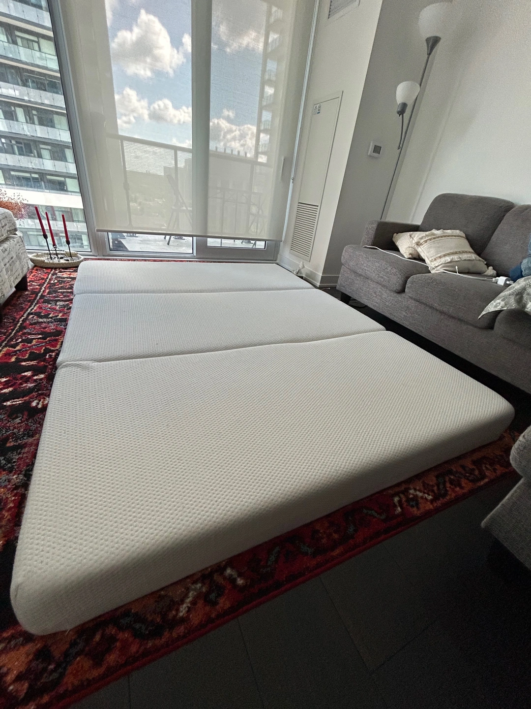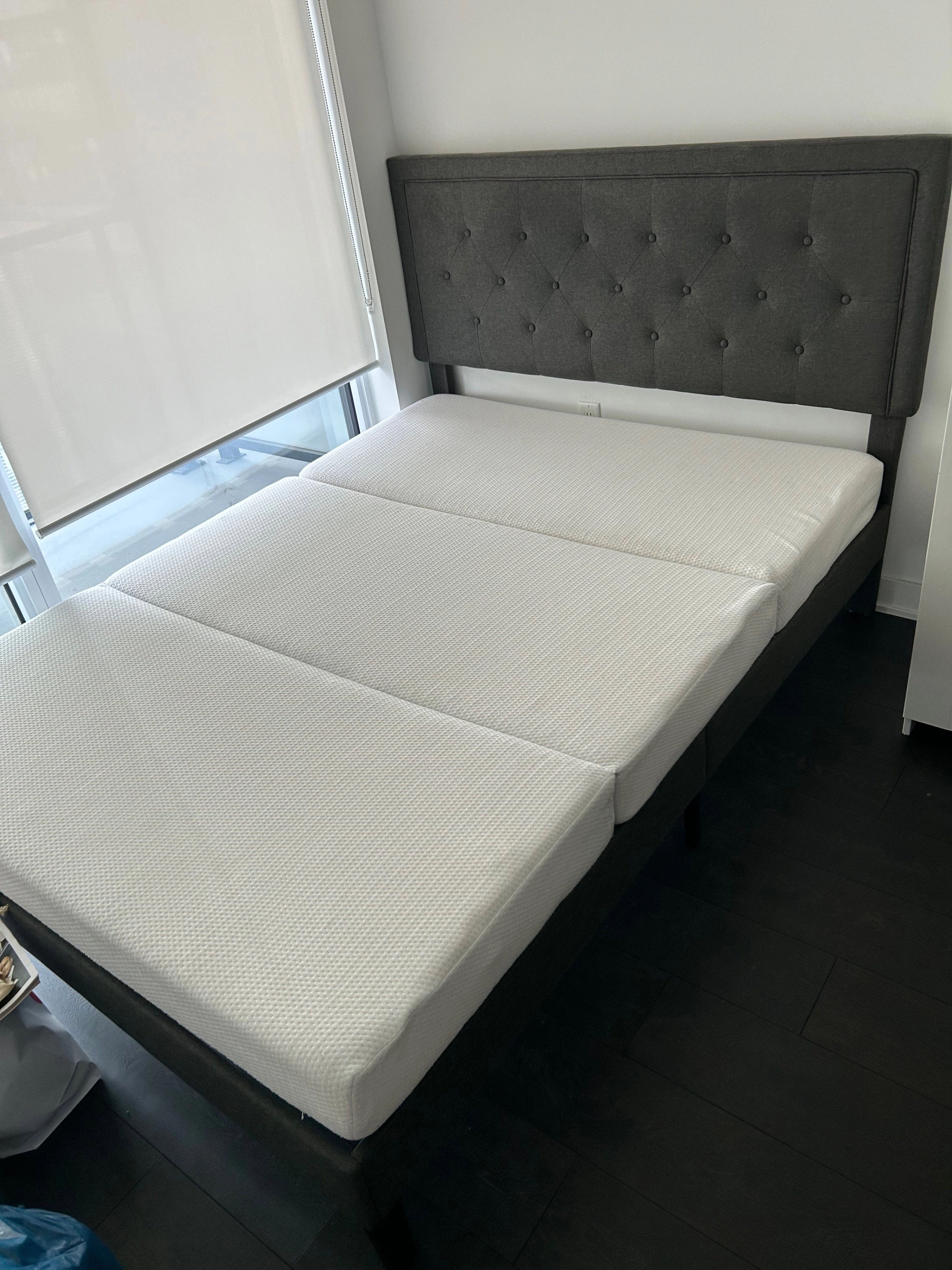 Selling both the mattress and the bed frame (Together or separate). We've had them for 2 years in a pet free, kid free home. - Queen size bed frame: $90 - Queen size foldable 6" mattress: $60 Selling due to moving out of province along with rest of our stuff (Links below) https://www.karrotmarket.com/ca/buy-sell/6436169/?in=langstaff-12322 https://www.karrotmarket.com/ca/buy-sell/6308177/?in=langstaff-12322 https://www.karrotmarket.com/ca/buy-sell/6308169/?in=langstaff-12322 https://www.karrotmarket.com/ca/buy-sell/6257072/?in=langstaff-12322