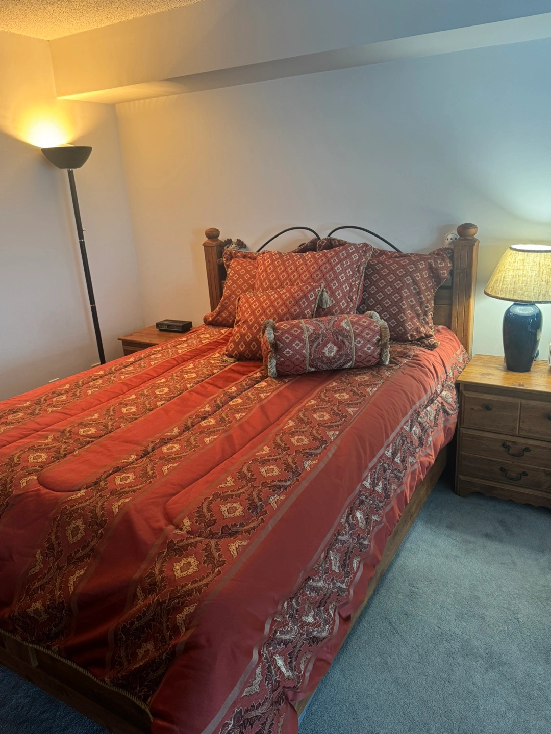 Queen size bed, light brown with mattress.Perfect for adding a touch of elegance to your bedroom