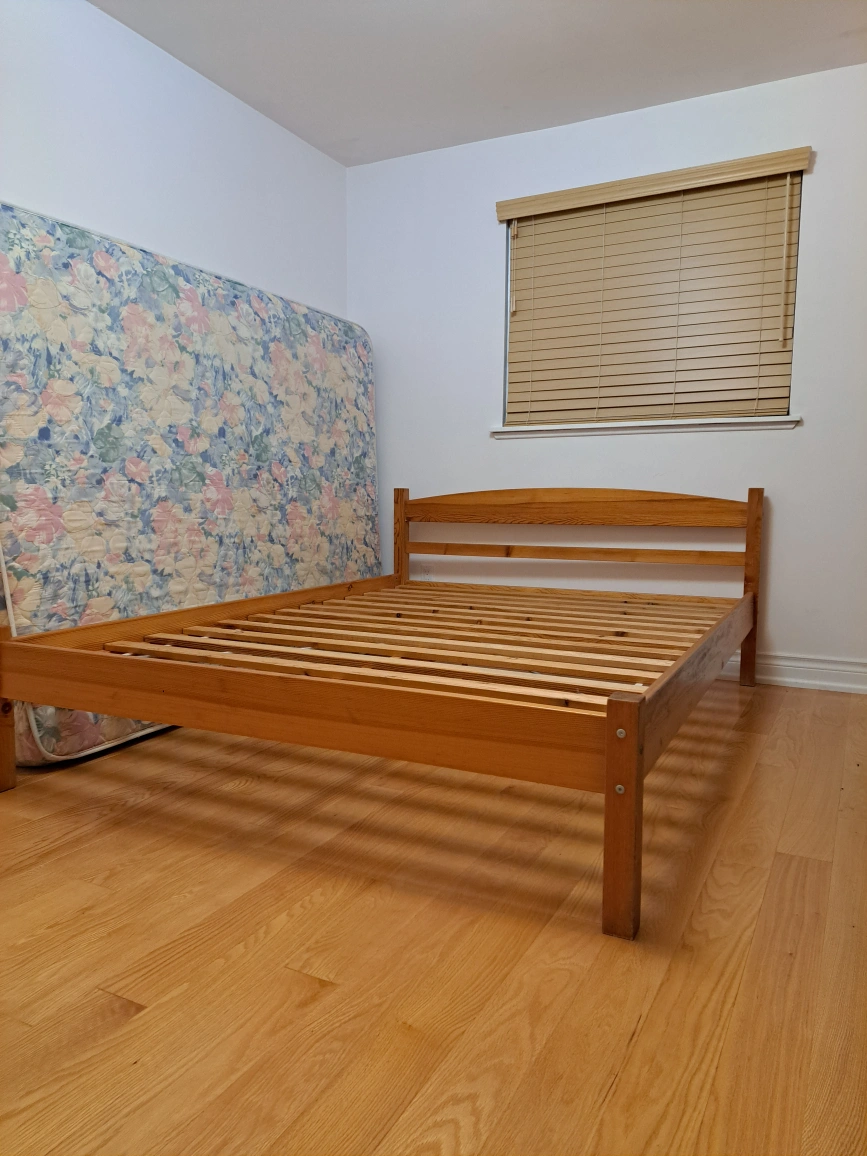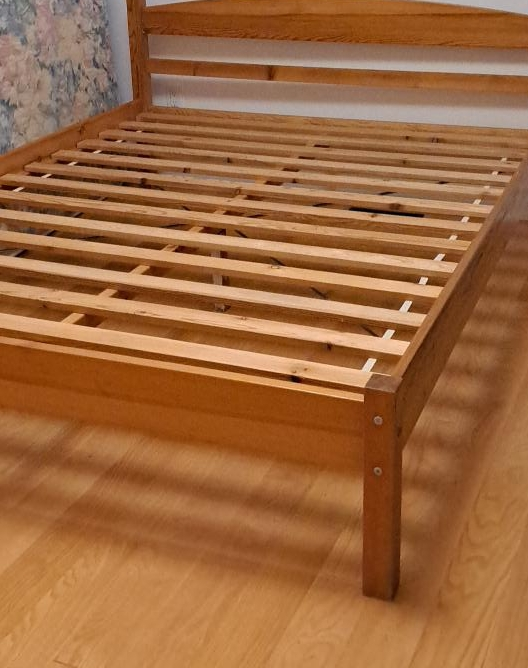 Selling a wooden bed frame. It's in good condition and ready for a new home! Perfect for adding a touch of natural warmth to your bedroom, self pick up