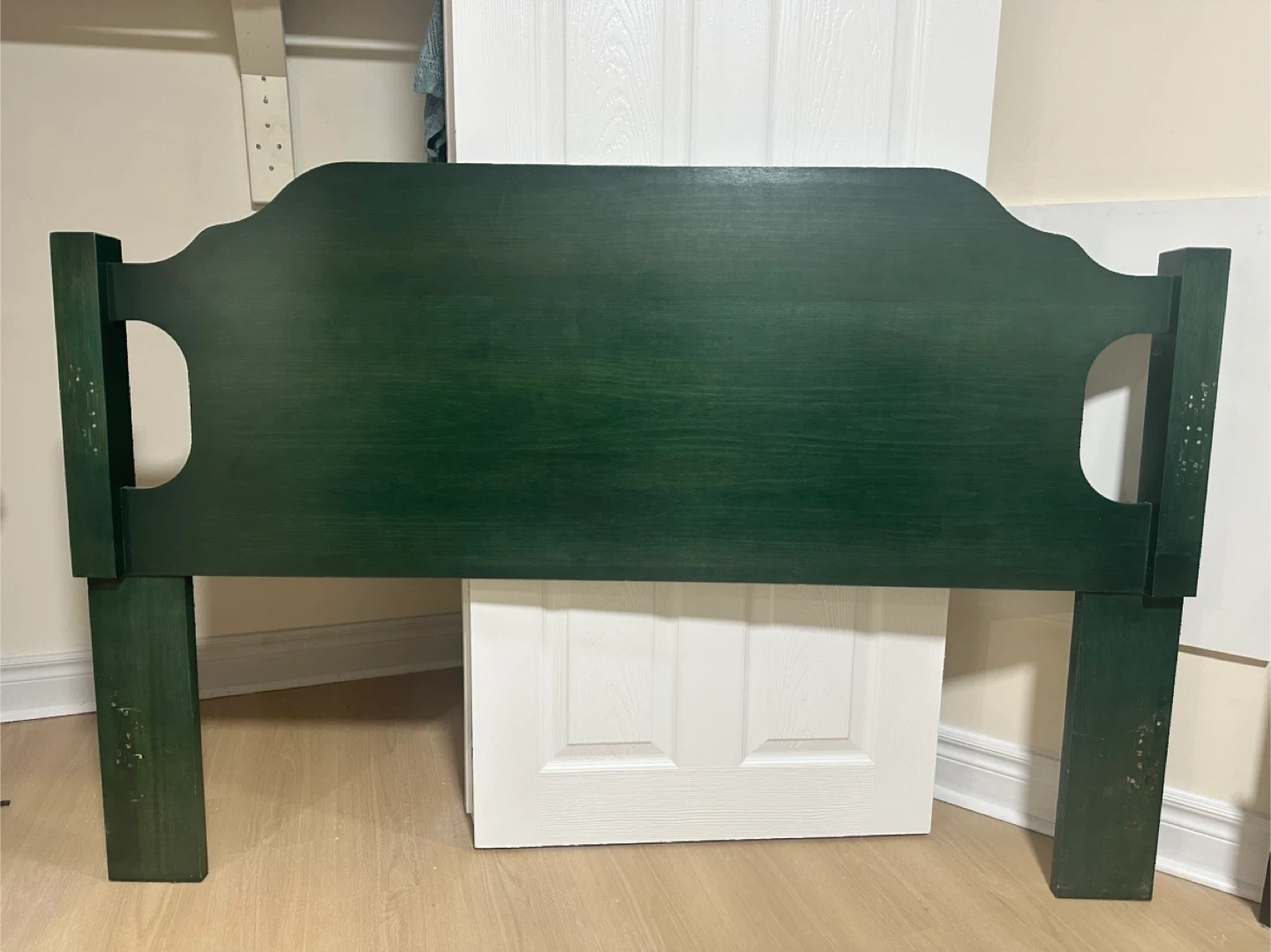 Selling a green queen size wooden headboard. It's in good condition and would be a nice addition to any bedroom. Pick up at Torbram and Steeplebush