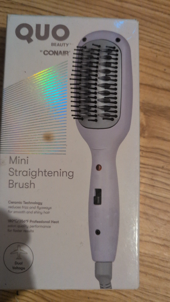 Selling a Quo Beauty mini straightening brush by Conair! It features ceramic technology to reduce frizz and flyaways, leaving your hair smooth and shiny. It heats up to 180°C/356°F for professional salon-quality performance and faster results. It's also dual voltage