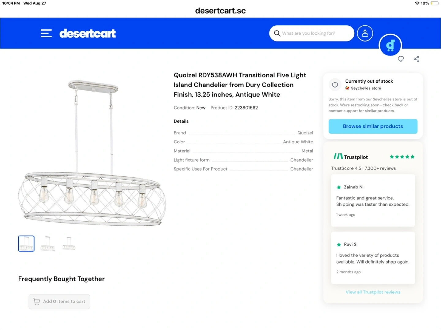 Show allQuoizel PCFN1716DSL LED Chandelier - NEW