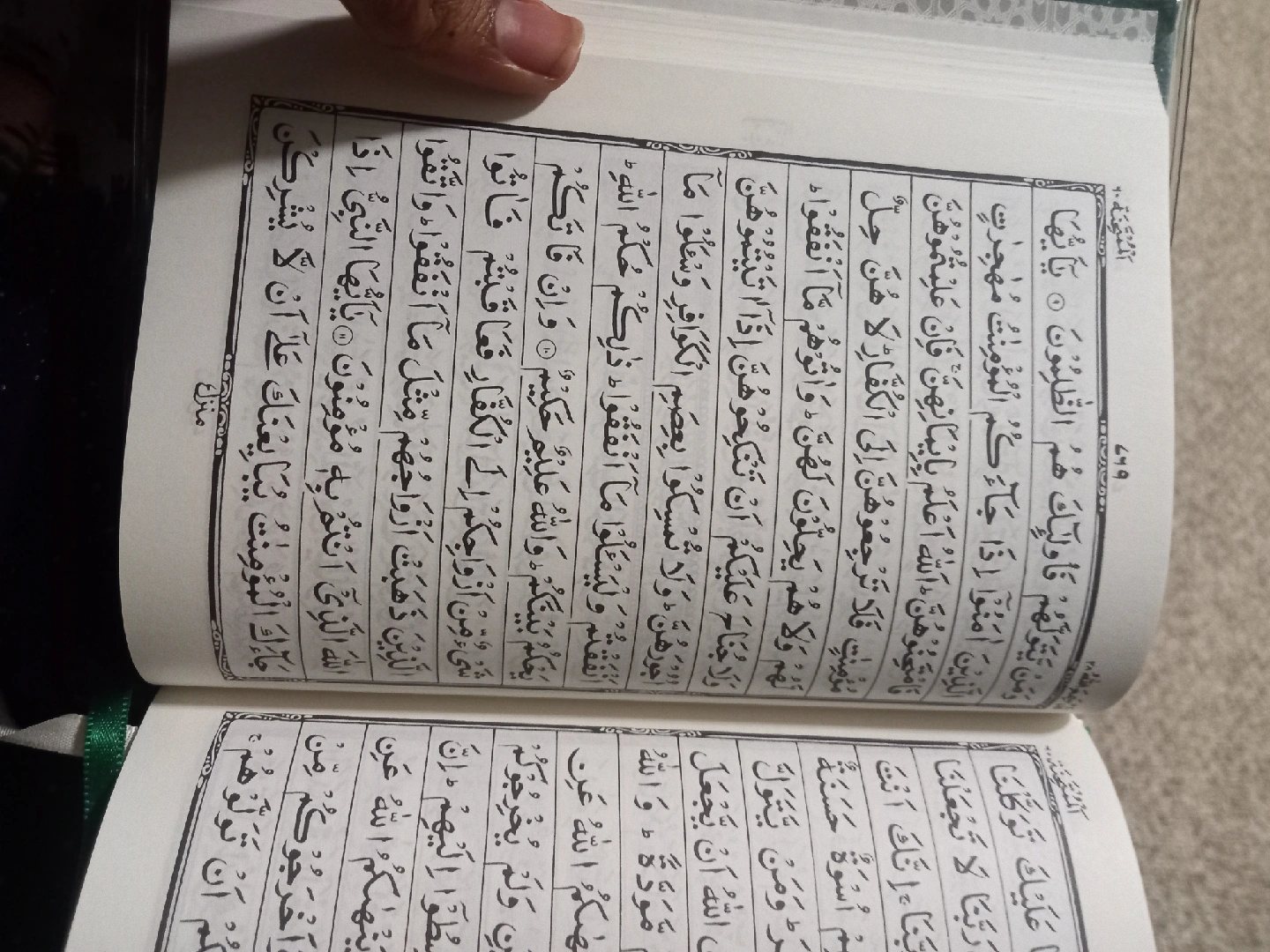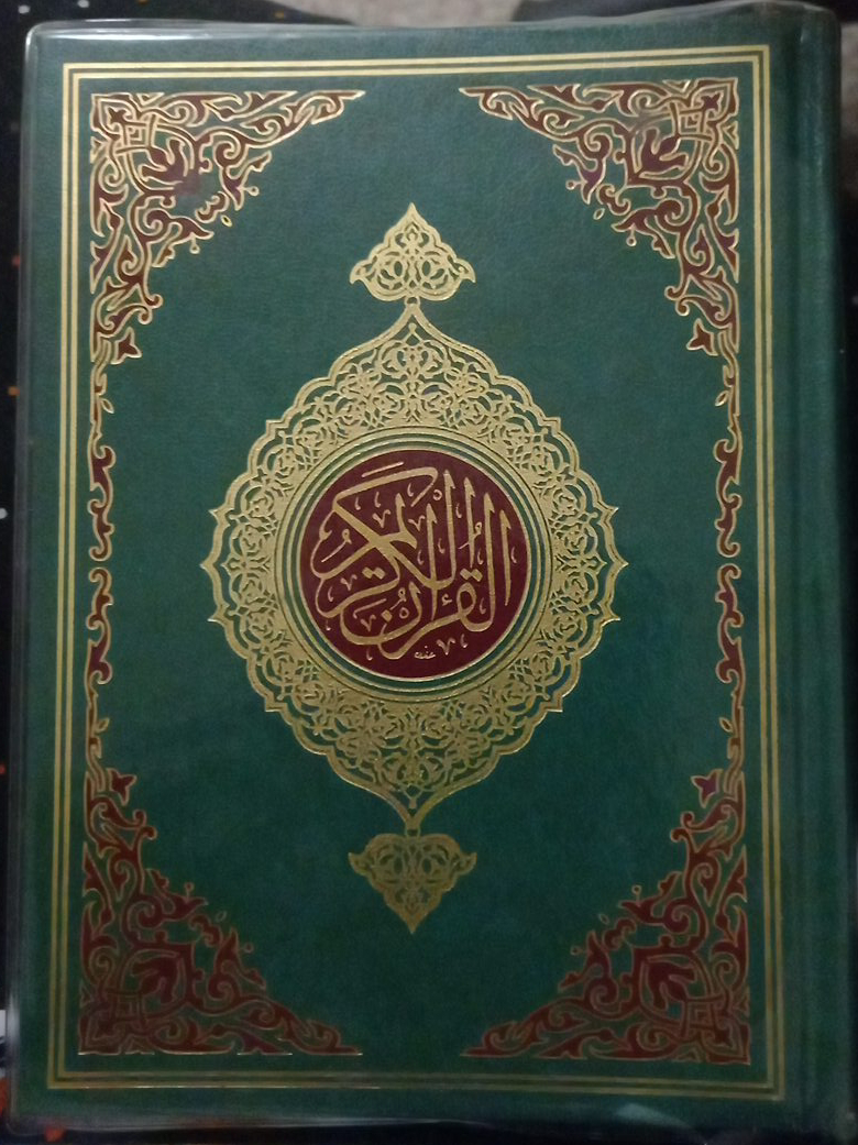 Selling a Quran book with a beautiful green and gold design. The cover has intricate patterns and detailing. A lovely addition to any collection or for personal use