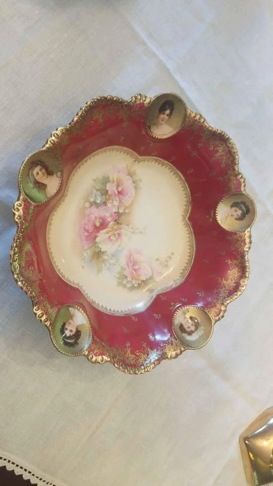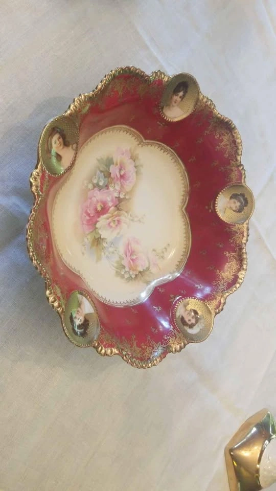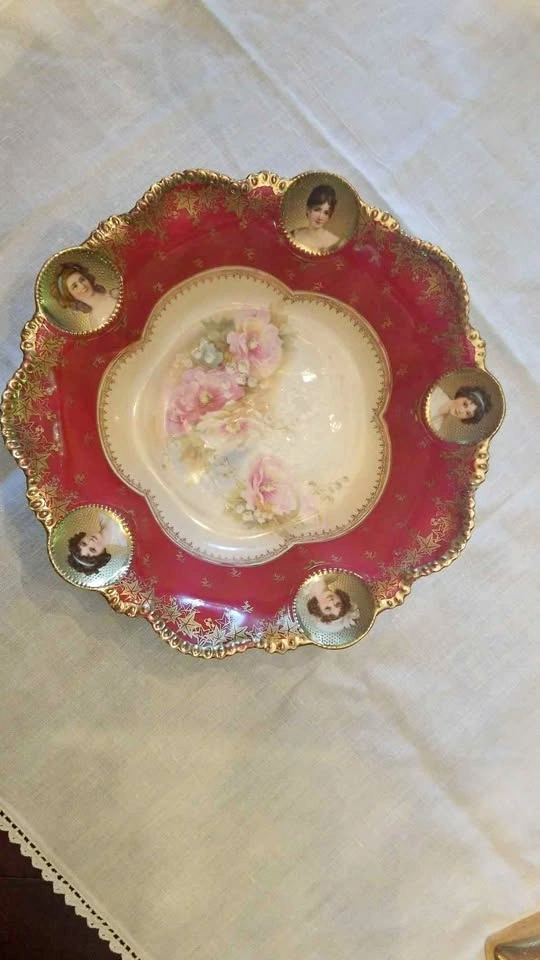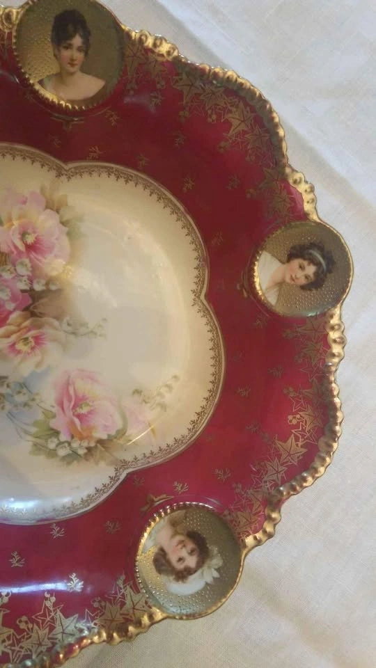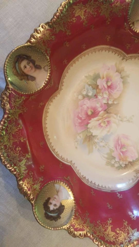 Rare floral with princess portraits. This piece is in very good condition no scratches or cracks. Period piece from 1900-1914 era Germany. Some tiny flaws.