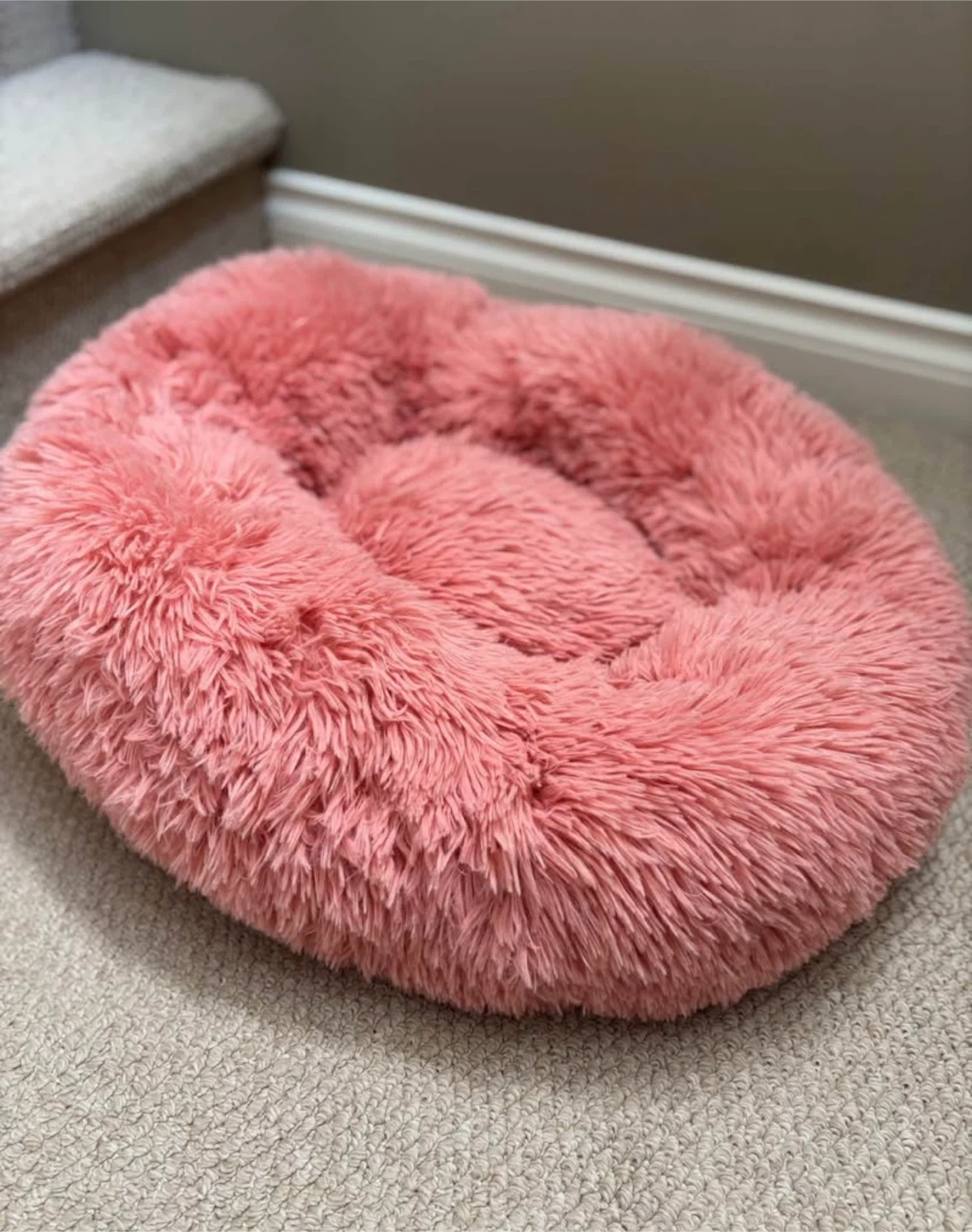 Selling a cozy pink calming pet bed! It's in great condition and perfect for small dogs or cats who love to curl up. The plush material is super soft and snuggly, making it a comfy spot for your furry friend to relax and feel secure - NEVER USED (BRAND NEW)