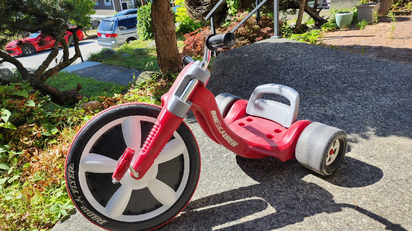 Selling a red Radio Flyer Big Flyer tricycle. It's in good condition and ready for a new rider! This cool tricycle is perfect for kids who love to cruise around the neighbourhood or the park. The sturdy construction ensures hours of fun and safe riding