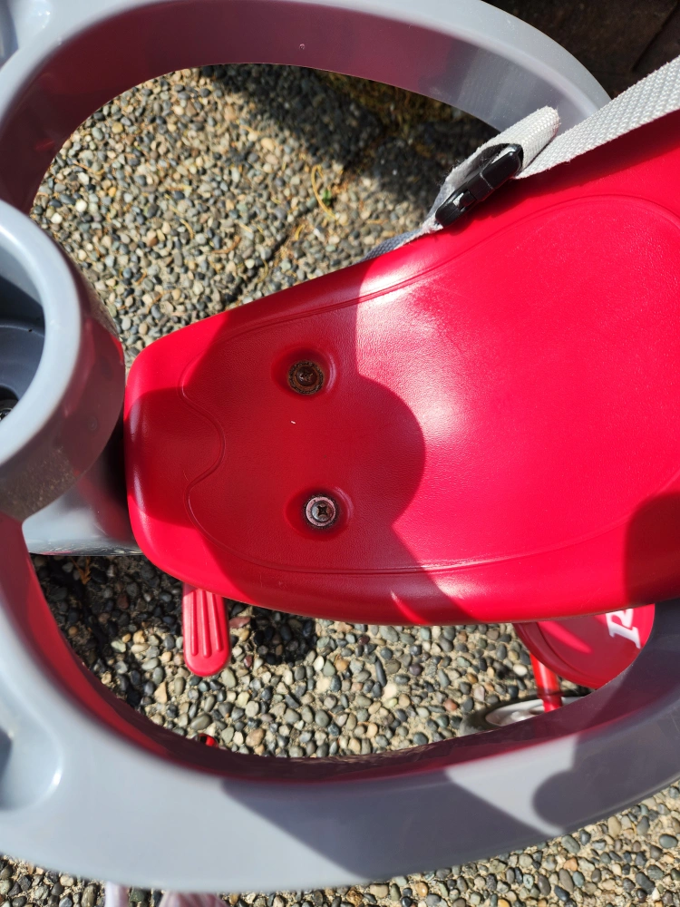 Selling a Radio Flyer Steer & Stroll Trike! The handle allows for parents to help steer (removeable) It's red and grey, perfect for little ones learning to ride. It has a canopy to keep the sun off (removeable), and a snack tray (removeable), and a little storage in the back for toys or snacks. The bike has a safety strap and there is some breakage in the strap, and it can be replaced so i priced accordingly. The bike works great.
