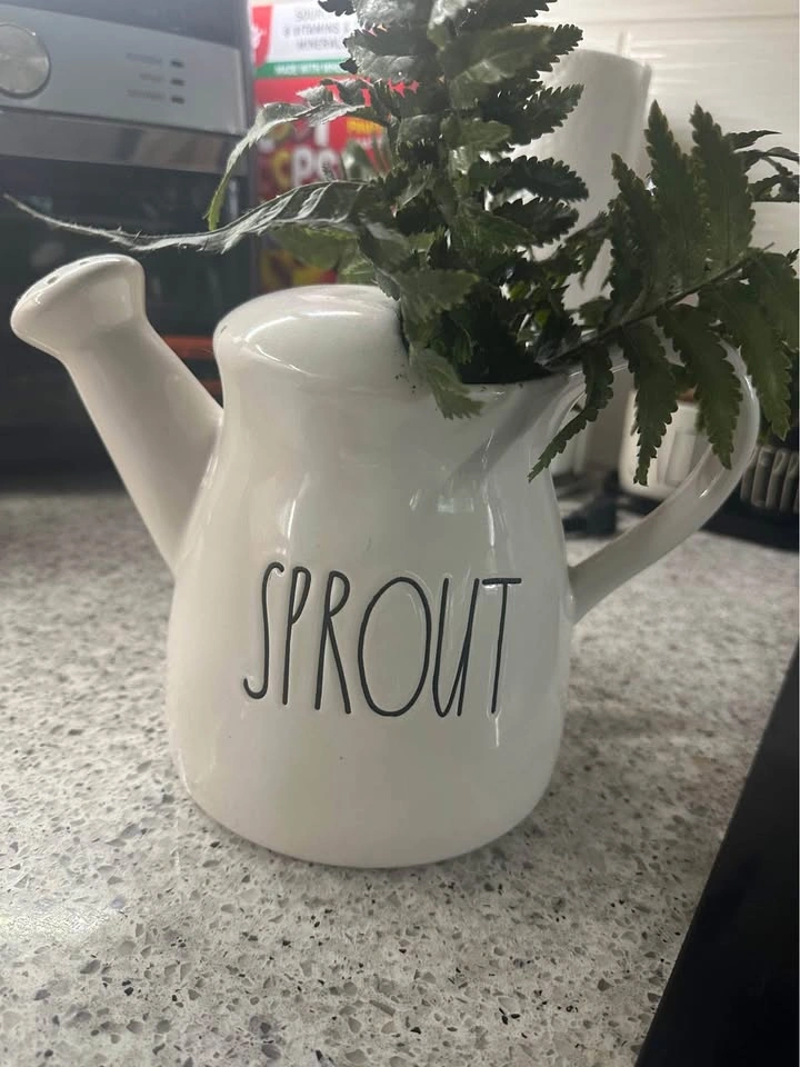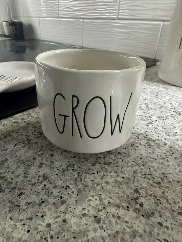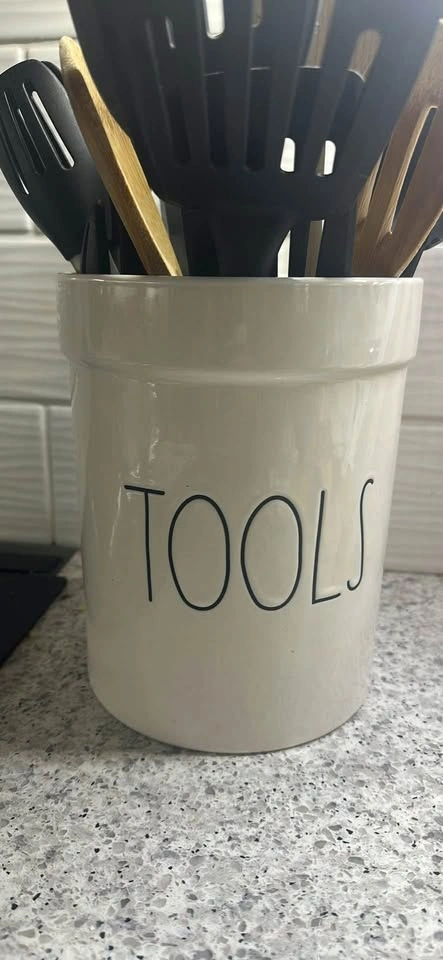 Tools canister $30 Cookie jar $25 Spread (butter) container $25 Wood calendar $30 Sprout watering can $25 Grow vase $15 Thankful dish $15 Fa la la spoon rest $5