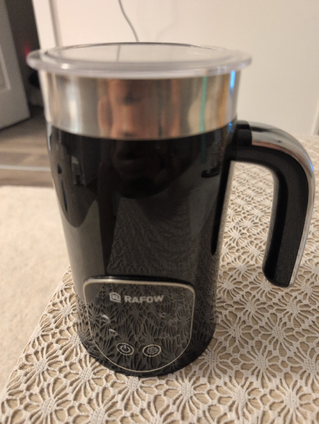 I'm selling a Rafow electric milk frother in great condition! It's perfect for making lattes, cappuccinos, and other frothy drinks at home. It's easy to use and clean, and it heats and froths milk quickly. the bottom part is missing. so if you have it already would be best