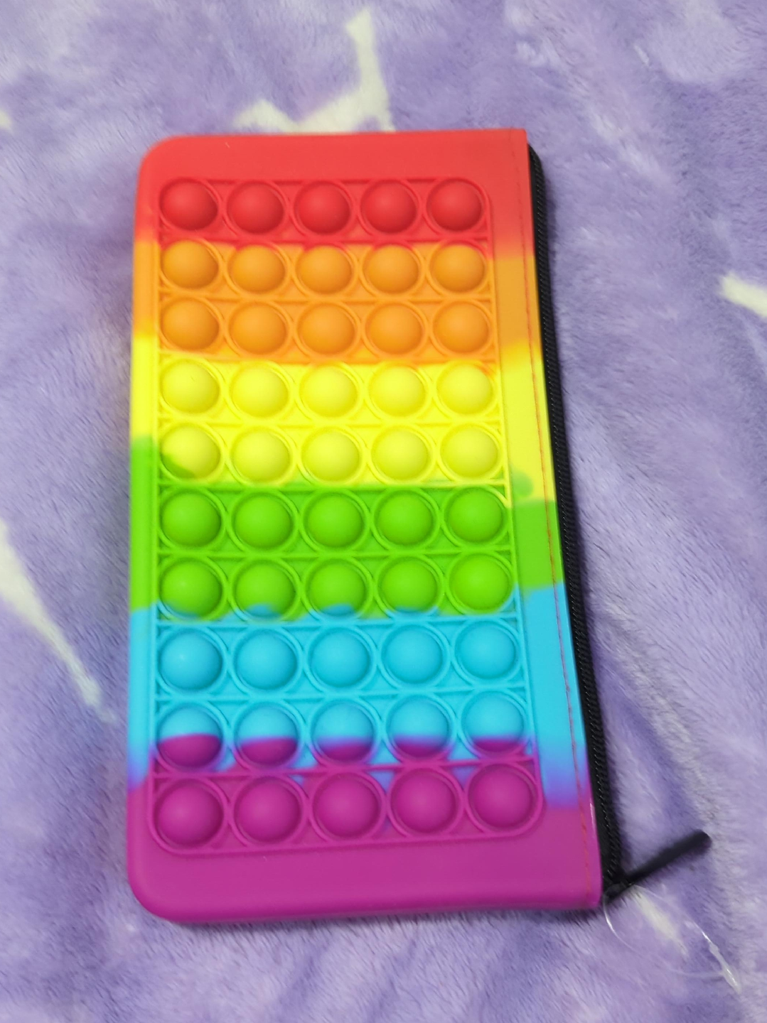 Fun rainbow-coloured Pop It pencil case! Perfect for keeping your pens and pencils organized with a bit of fidget fun