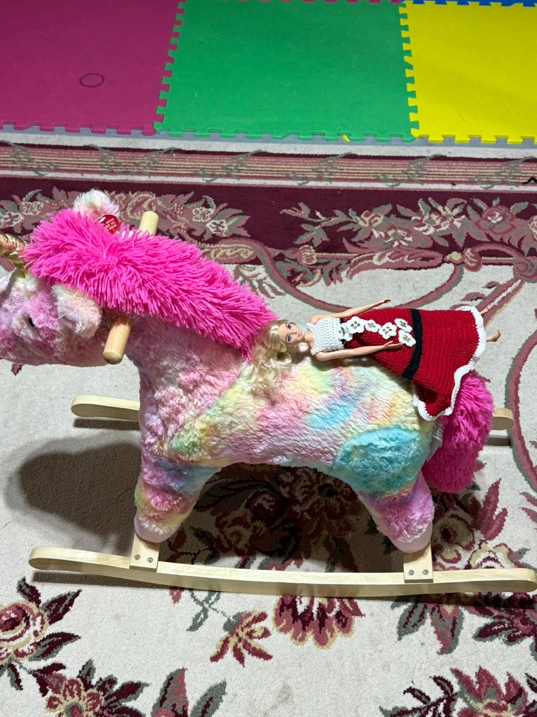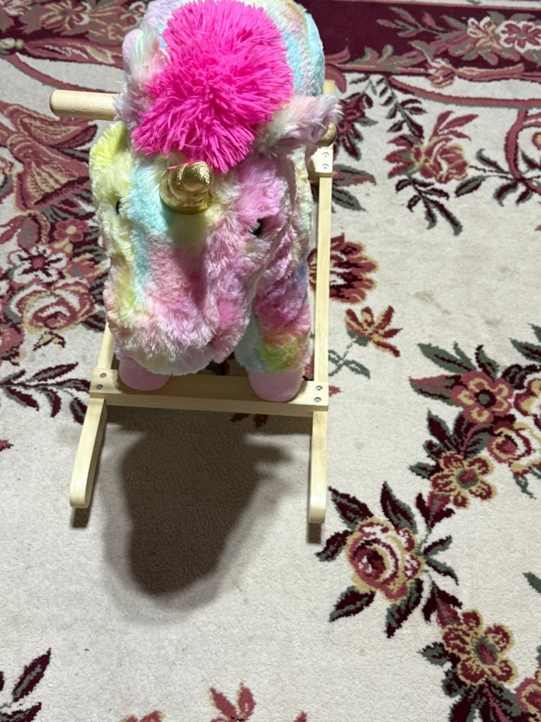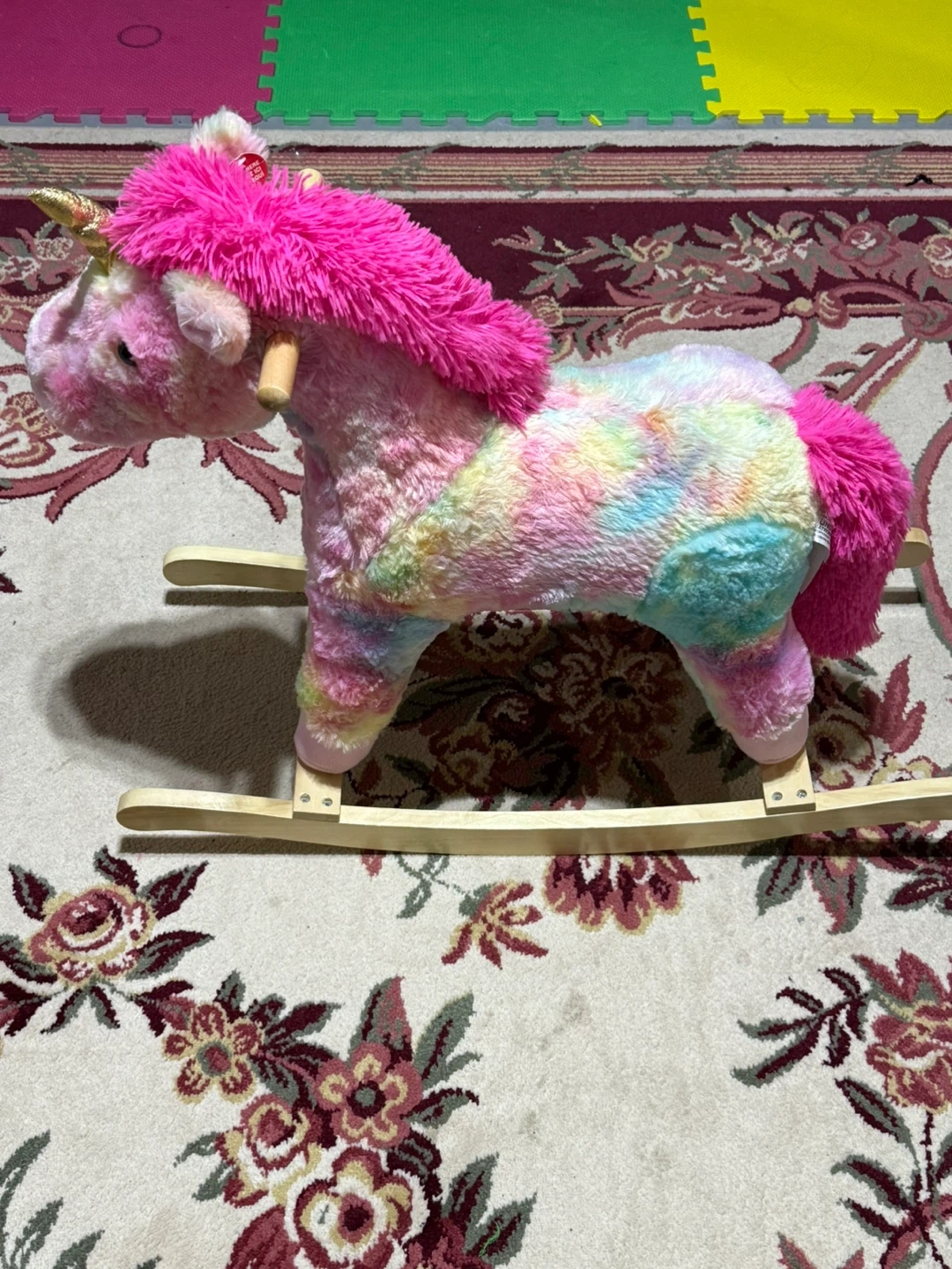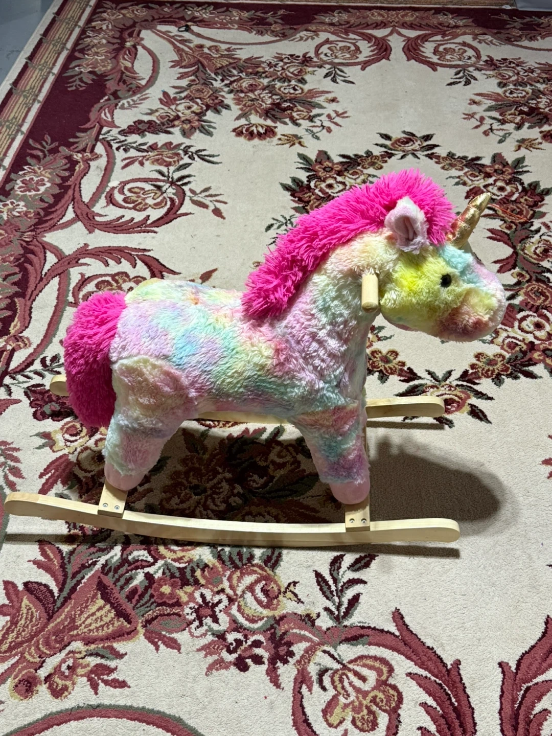 Selling a cute rainbow unicorn rocking horse! It's in great shape and ready for a new home. Perfect for little ones who love unicorns and imaginative play