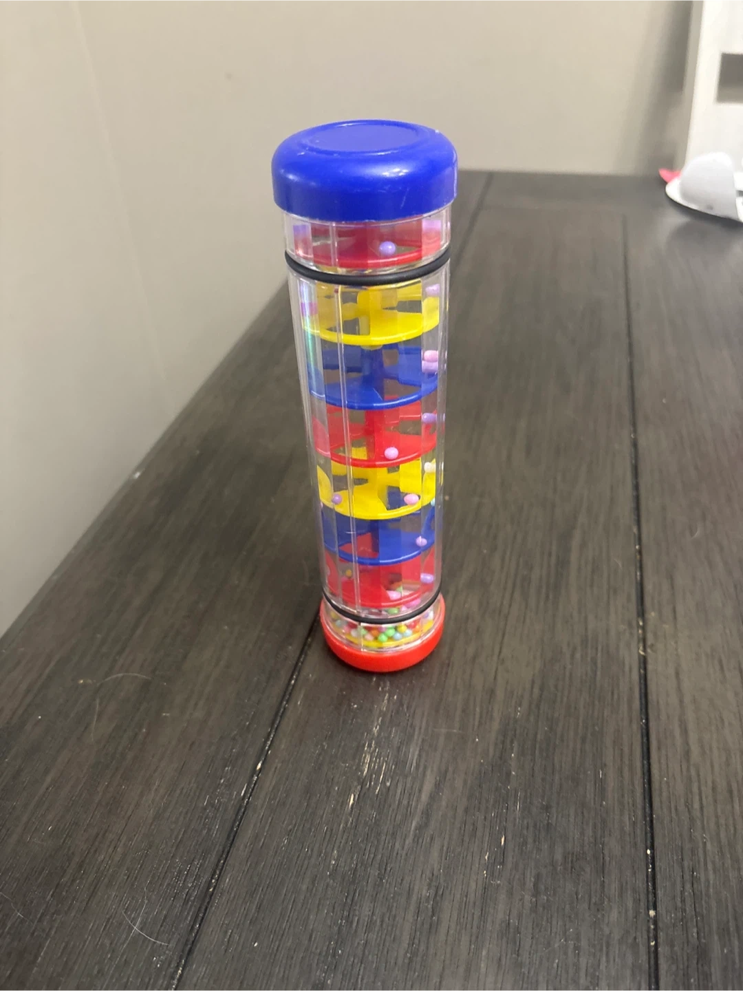 This rainmaker toy is perfect for babies and toddlers! It creates a soothing rain-like sound when turned over, which can be very calming. The bright colours and rolling balls inside also help with visual tracking and sensory development