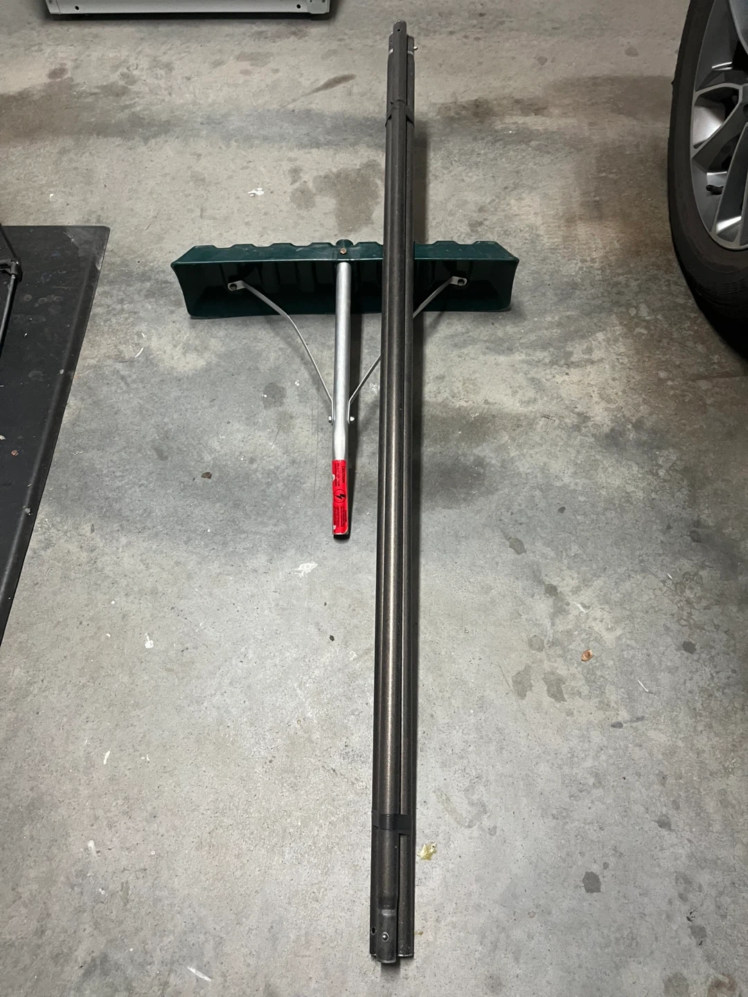 Snow roof rake. 23” wide x 16’ long. The three poles are 5’ each. Poles can be used individually or all together. Keep your gutters from being packed with snow. Asking price is 1/3 the cost of new.