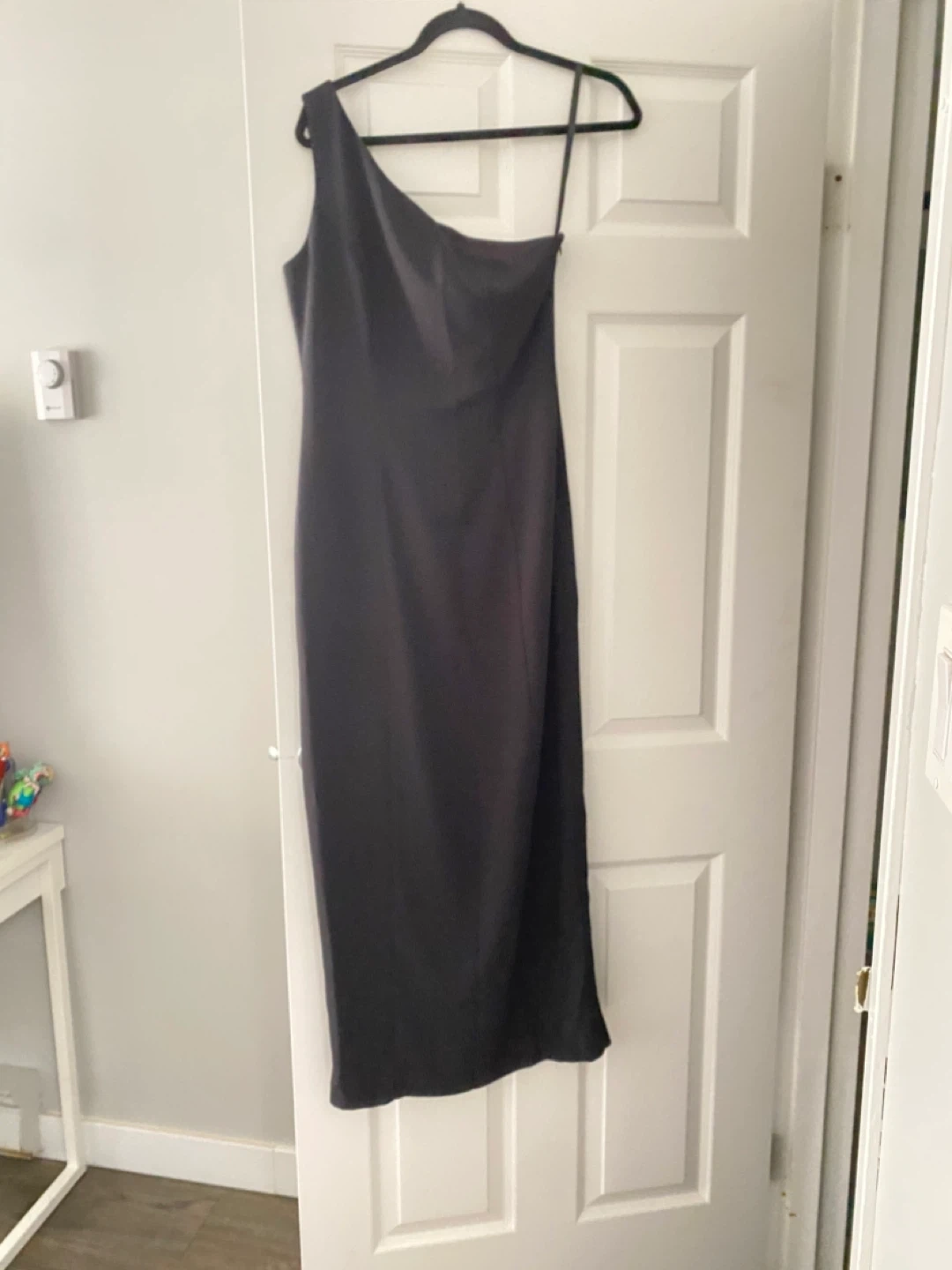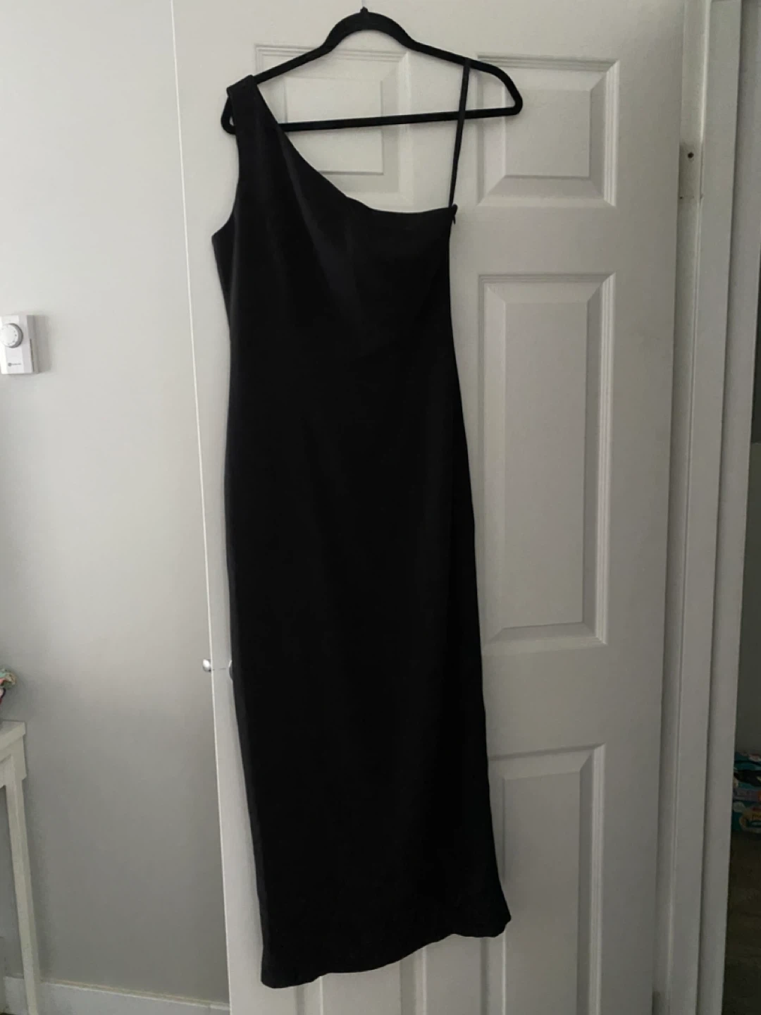 Selling a stylish black dress from Randi May Collection! It's a size 6 and features a chic one-shoulder design. Perfect for a night out or a special occasion!