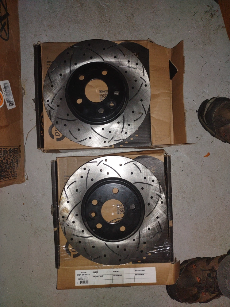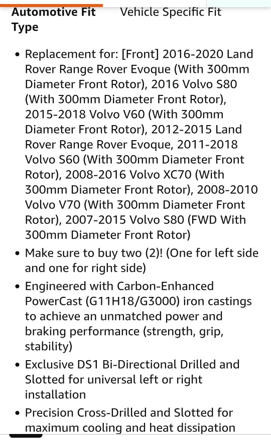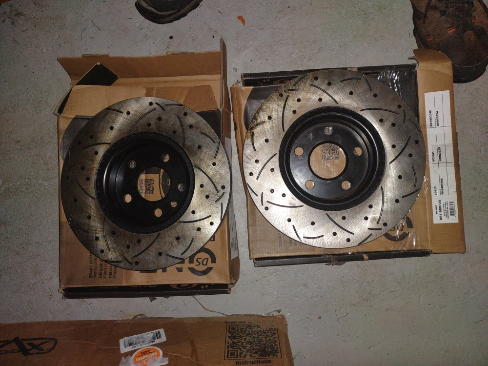 Brand New pair of new DS-One drilled and slotted performance rotors for sale still in box. The rotors are for Range Rover and Volvo might fit other vehicles. All the info is in the photos. Asking $50 each let me know Ty