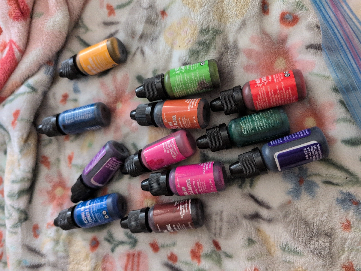 I'm selling my collection of Ranger Alcohol Inks! There are a variety of colours included, perfect for crafting and mixed media projects. Each bottle contains 0.5oz (14 ml) of ink. They are made in the USA all more than half full! paid over $40 3 years ago for only a few projects