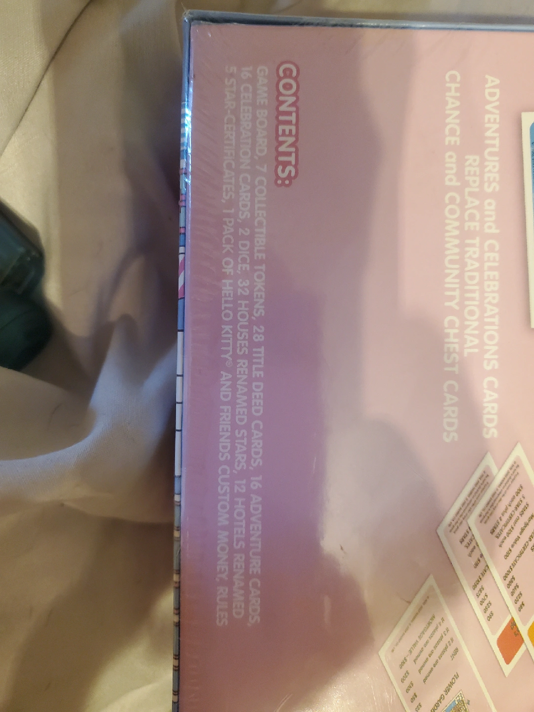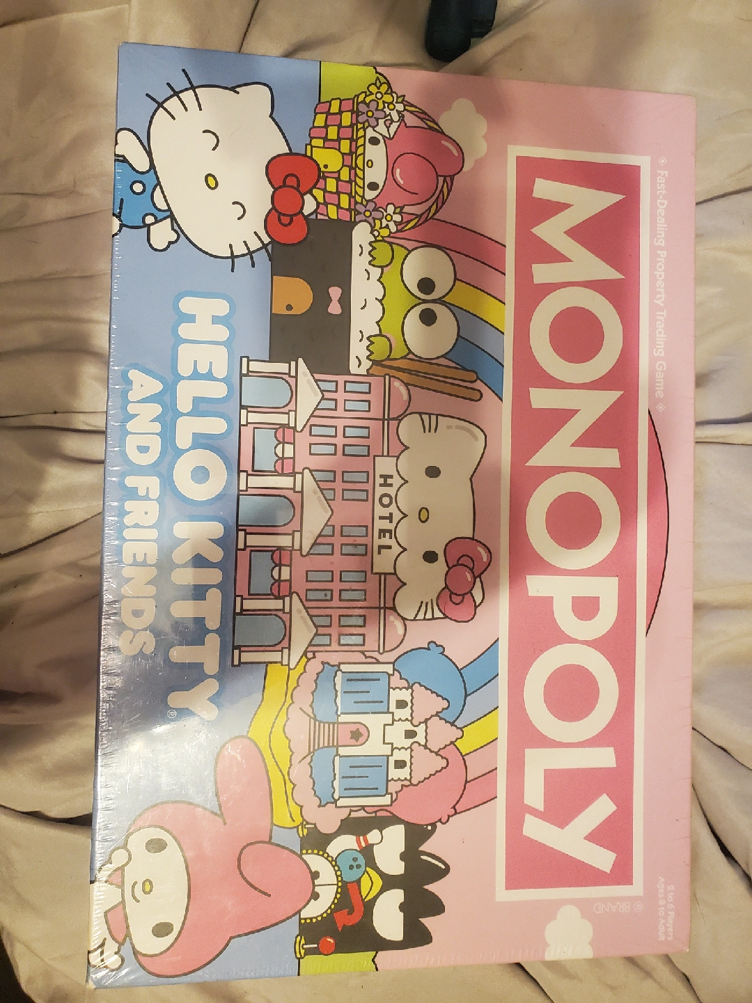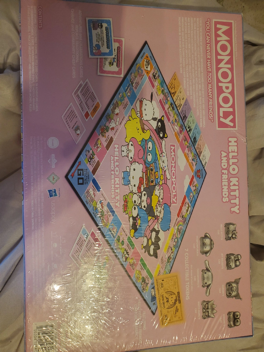 Selling a brand new, still in shrink wrap, super rare, Monopoly Hello Kitty and Friends edition board game! It includes: - Game board - 7 Collectible tokens - 28 Title Deed cards - 16 Adventure cards - 16 Celebration cards - 2 Dice - 32 Houses - 12 Hotels - Star certificates - Hello Kitty and Friends custom money - rule book