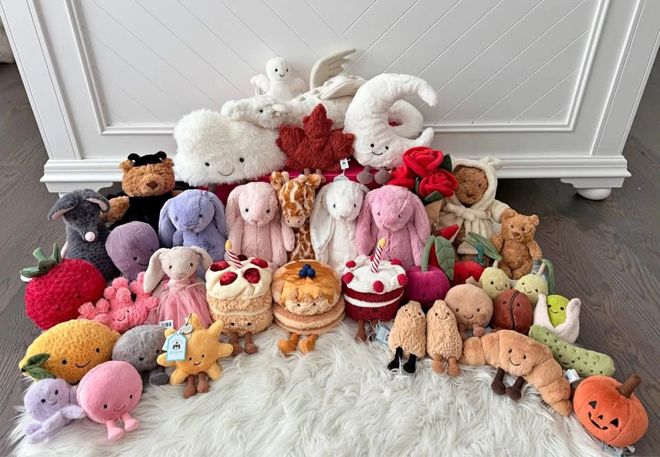 Huge Jellycat collection for sale, including rare and retired pieces! All are brand new with tags and receipts are available. Perfect for collectors or as adorable gifts. Amuseables Food Jellycats: - Amuseables Fran Pancakes🥞: $85 - Amuseables Birthday Cake🎂 : $70 - Amuseables Cheri Red Velvet Cake🎂: $85 - Amuseables Croissant 🥐: $55 - Amuseables Mia (Pink) Macaron 💗: $50 - Amuseables Mona (Brown) Macaron🤎: $45 - Amuseables Strawberry🍓 : $70 - Amuseables Lemon🍋 : $70 - Amuseables Cherry🍒 : $60 - Amuseables Coffee Bean☕️: $55 - Amuseables Chilli Pepper🌶️ : $60 - Amuseables Olives🫒 : $95 - Amuseables Pistachio 💚: $60 - Amuseables Pickle🥒 : $55 - Amuseables Peanut🥜 : $55 Seasonal & special edition Jellycats: - Ooky Jack O Lantern 🎃: $55 - Mysti Ghost 👻: $60 - Spider Bartholomew Bear 🐻: $120 - US Exclusive Amuseables Cat Peanut🥜: SOLD - Lachlan Sad Rat🐀 : $75 - Large Snow (White) Dragon🐉 : $160 - Indigo Exclusive Maple Leaf🍁: $85 - Amuseables Cloud ☁️ : $55 - Amuseables Moon🌙 : $75 - Amuseables Coral 💗: $60 - Lottie Fairy Bunny 🐰: $85 - Amuseables Rose Bouquet 💐: $85 - US Exclusive Amuseables Pebble 🪨: $80 Medium Bashful Bunny Jellycats: - Medium Bashful Blush Bunny💗: $65 - Medium Bashful Viola Bunny💜: $70 - Medium Bashful Twinkle Bunny🤍: $75 - Medium Bashful Tulip Bunny💞: 80 Animal Jellycats: - Medium Bashful Giraffe🦒: $75 - Maya Small (Purple) Octopus🐙: $90 - Bathrobe Bartholomew Bear 🛀: $120 - Tiny Bartholomew Bear 🐻: $50 - Fluffy Octopus 🐙: $45 Bag charm Jellycats: - Amuseables Sun Bag Charm ☀️: $55 Pickup in Markham / Scarborough / Stouffville. Check out my other listings for more rare Jellycats