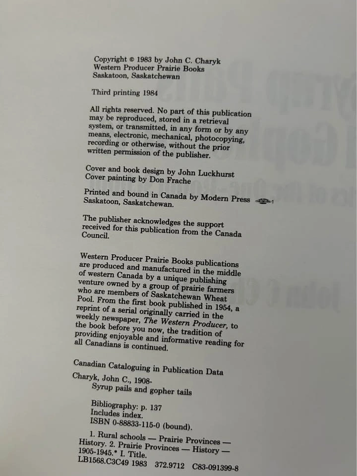 📚 Syrup Pails and Gopher Tails: Memories of the One-Room School by John C. Charyk 📖 Third Printing, 1984 (originally published 1983) – Western Producer Prairie Books, Saskatoon This Canadian prairie classic captures the charm, grit, and humour of one-room schools on the Prairies. Packed with true stories, rare photos, and vivid memories, it’s a time capsule of rural life that’s long gone but never forgotten. ✔ Excellent condition – clean pages, solid binding, dust jacket intact ✔ Marked on one of the opening pages with the original collector’s name (authentic touch of history) ✔ Hard to find, especially in this shape ✔ A must-have for prairie history collectors, teachers, or anyone who grew up with syrup pails and chalkboards 💡 John C. Charyk was Alberta’s leading historian of rural education, and his books are prized by collectors across the Prairies. 💲 Asking $39 CAD (priced to sell quickly in Saskatoon) 📍 Pickup at 2302 Main st, Saskatoon ✅ Payment & Pickup Policy: • Cash or automatic e-transfer accepted • Items are first come, first serve unless you’re on the way immediately • I can hold for a few hours if you’re headed over right away • Longer holds only with prepaid e-transfer • Thank you for understanding! 👉 Check out my other listings for more rare books, collectibles, and unique finds. I’m always adding fresh treasures — follow me so you don’t miss out!