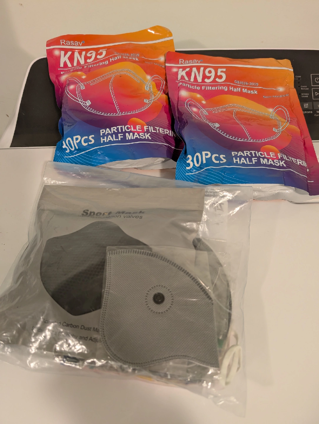 Selling Rasav KN95 particle filtering half masks. Each package contains 30 pieces. Perfect for everyday use!