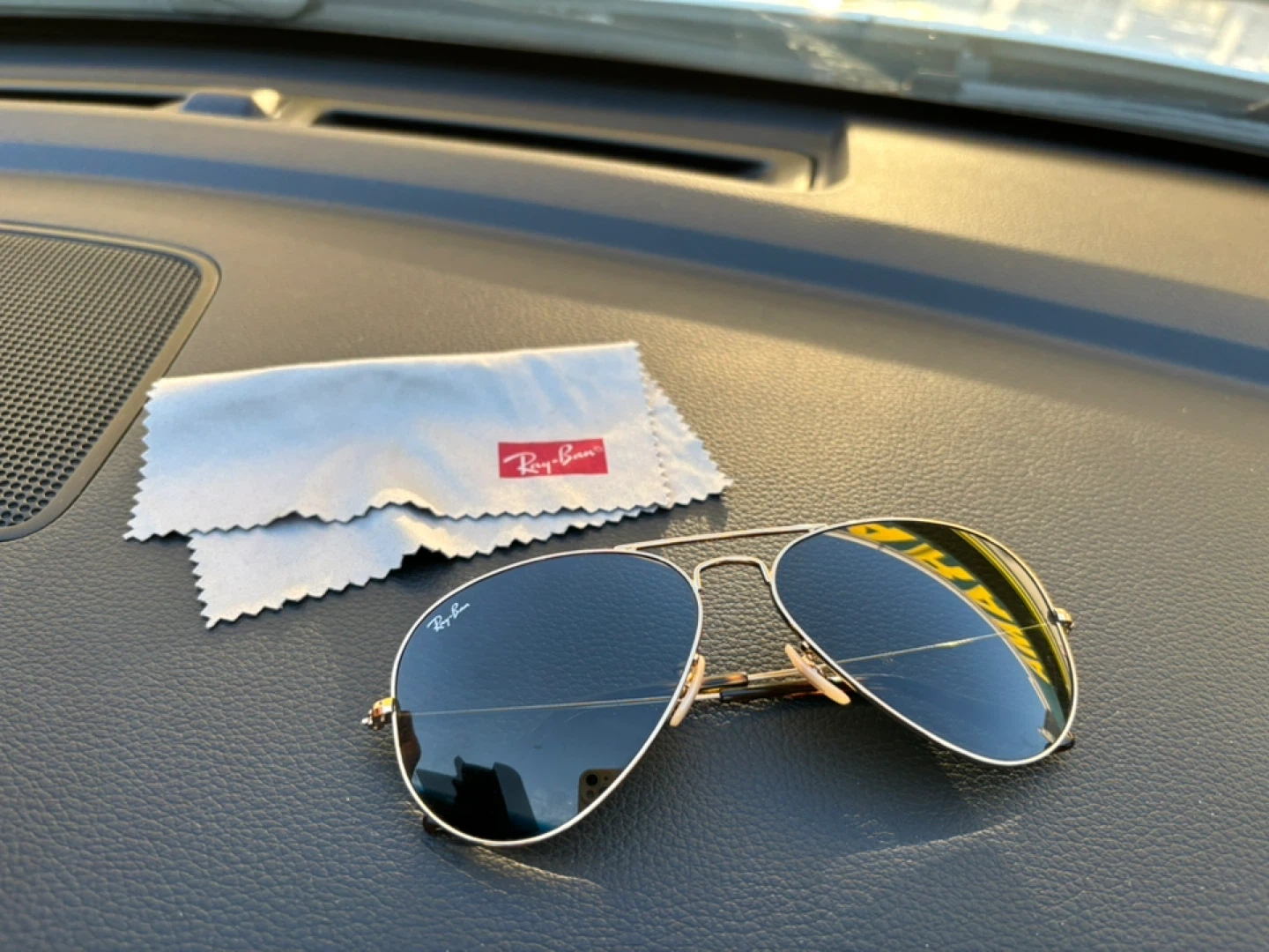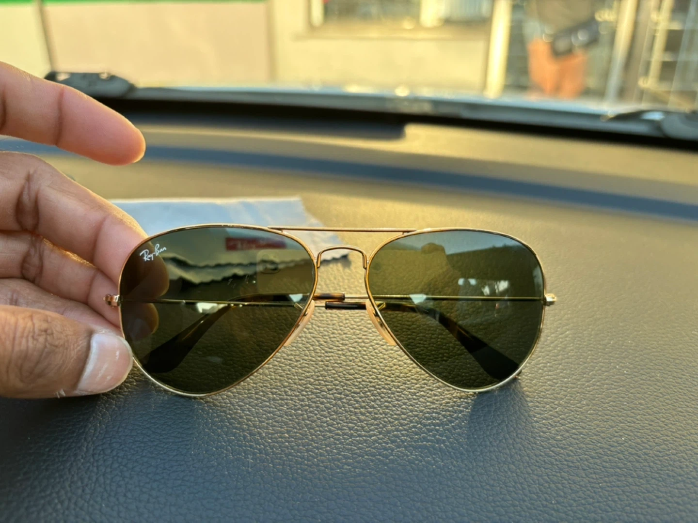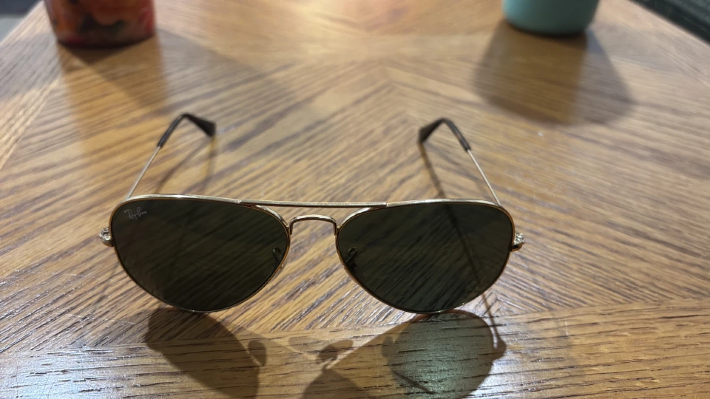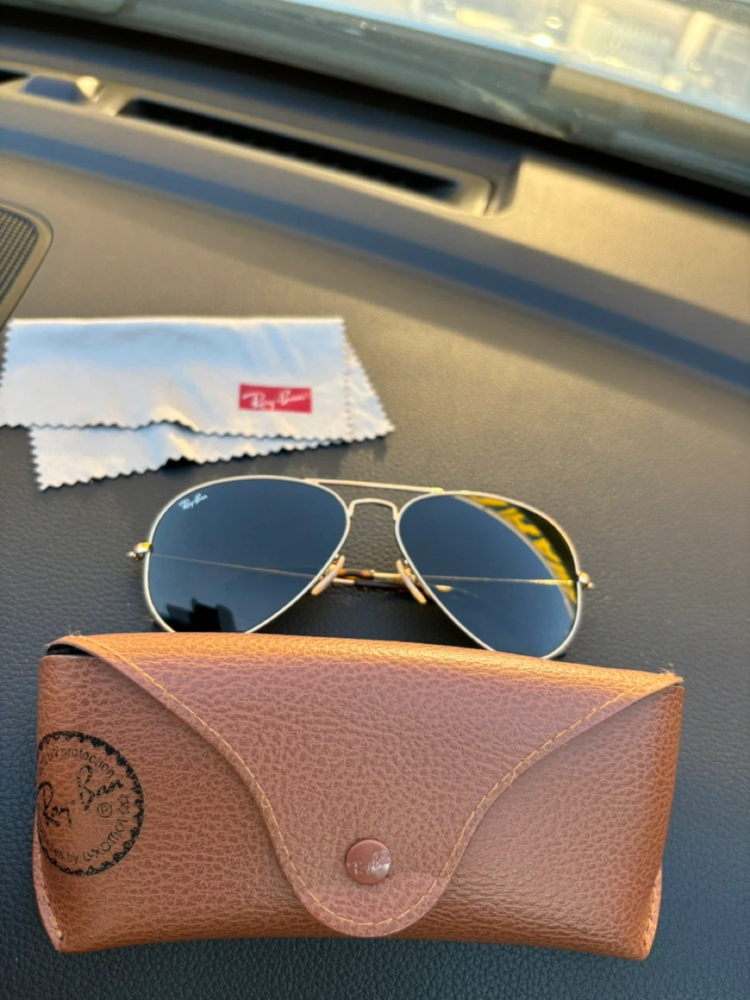 Selling a pair of classic Ray-Ban aviator sunglasses. They feature a gold frame and come with a Ray-Ban cleaning cloth and case. They're in great shape and ready for a new owner! Cash only. Delivery near Langley