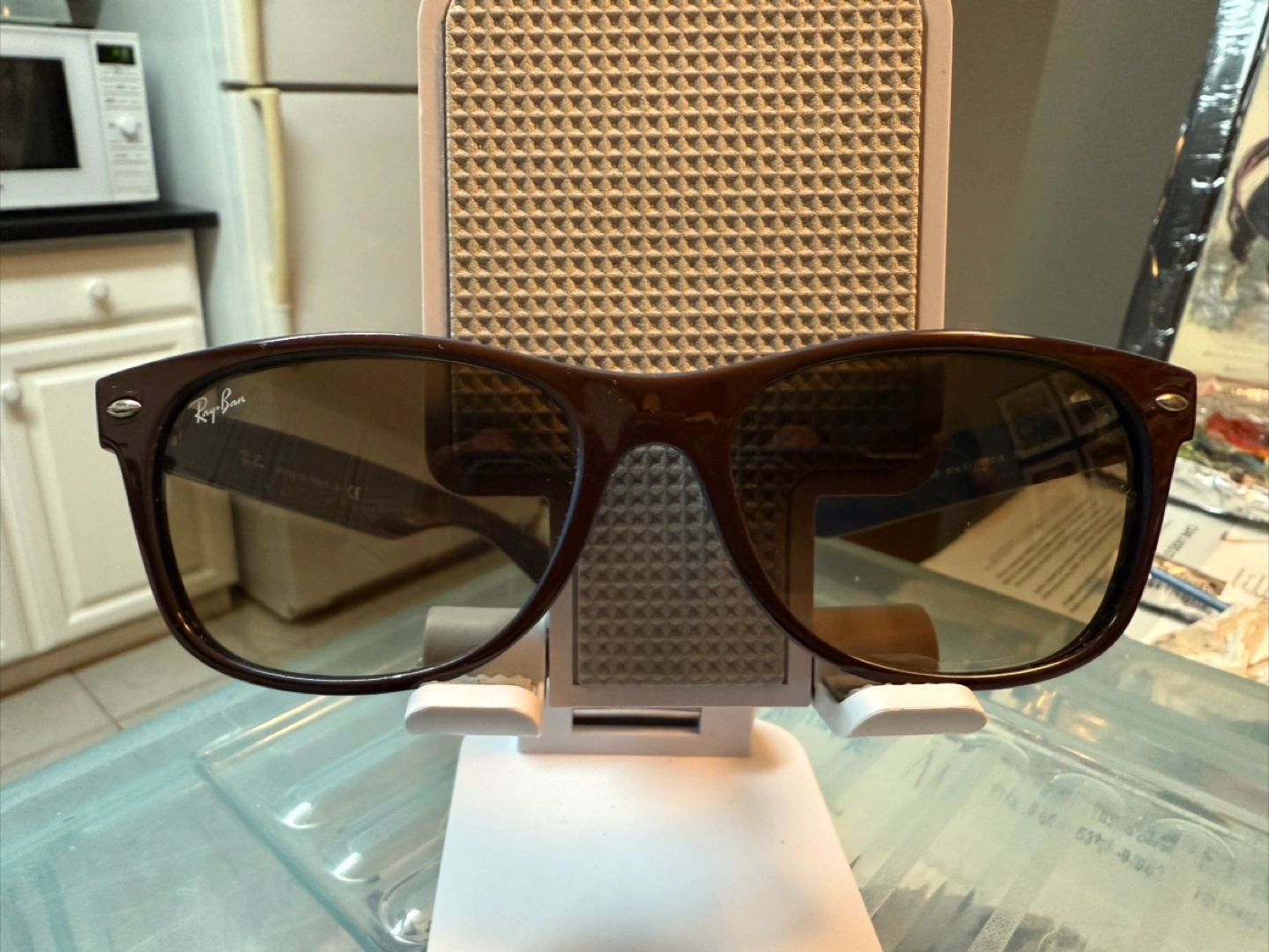 Selling a pair of Ray-Ban Wayfarer sunglasses, model RB2132. They come with a case and cleaning cloth. The sunglasses are in good condition and ready for a new owner!